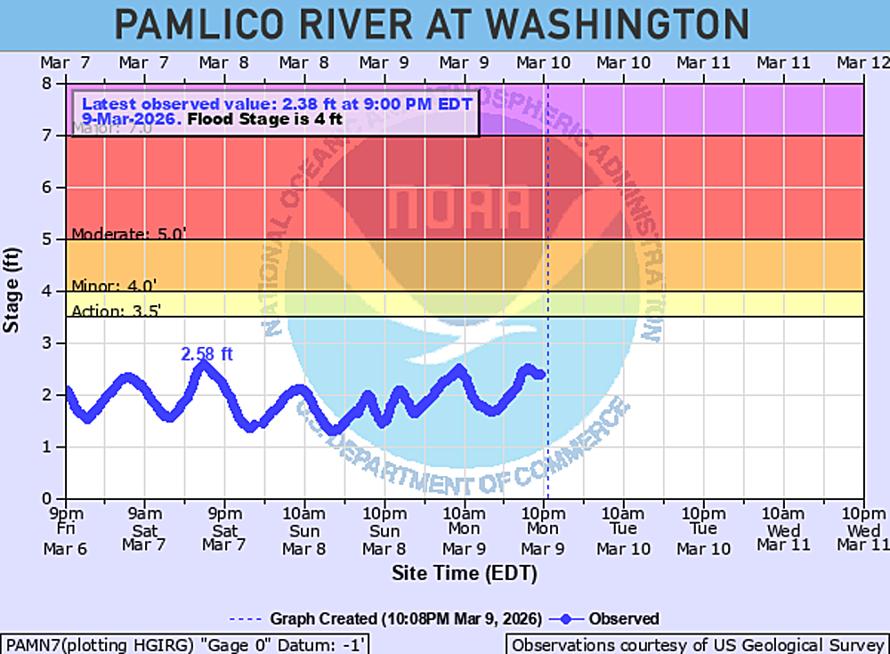 Pamlico River at Washington Water Levels