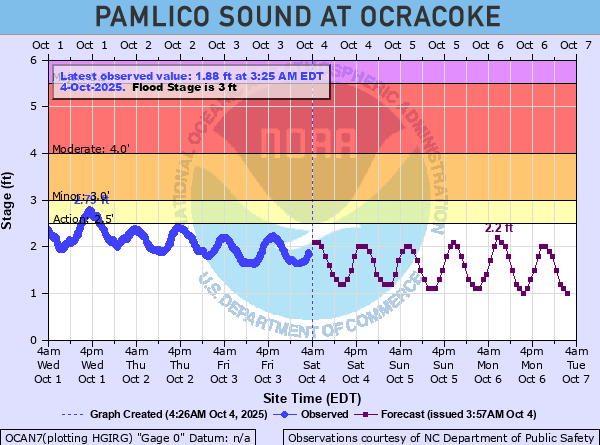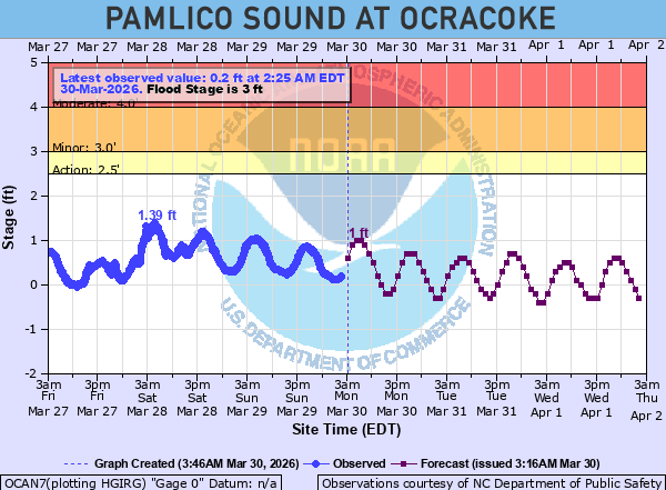 Pamlico Sound at Ocracoke Water Levels