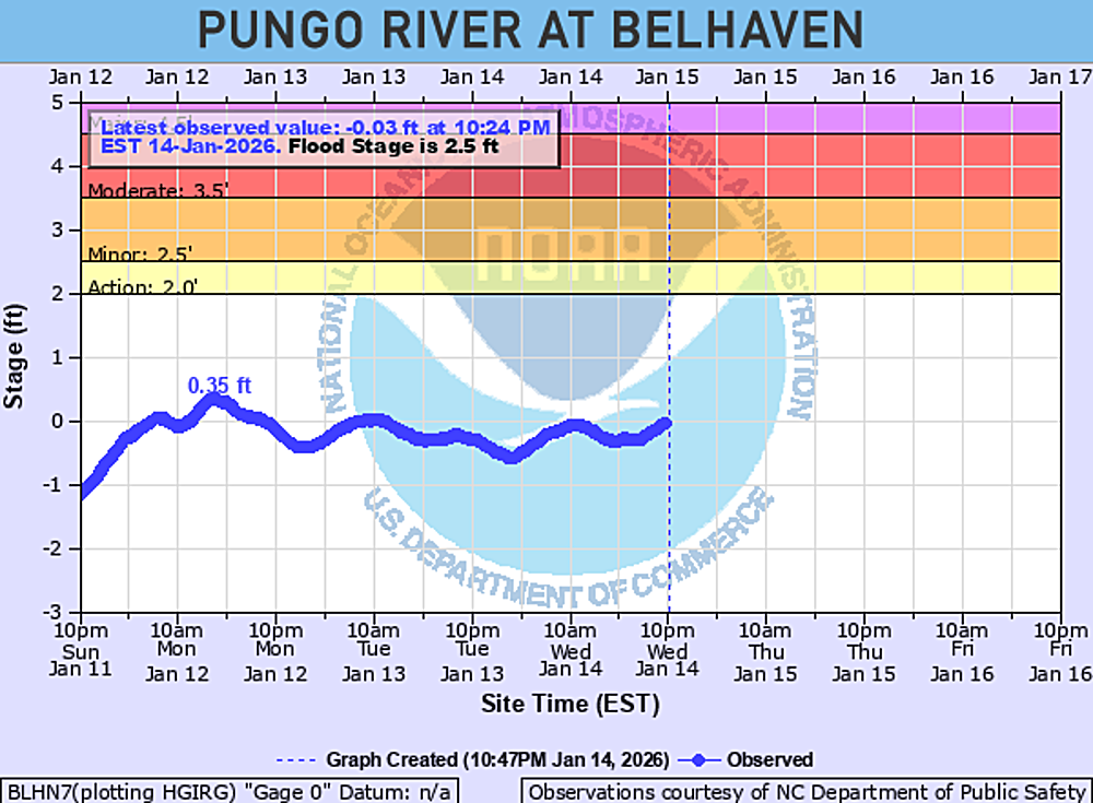 Pungo River at Belhaven Water Levels