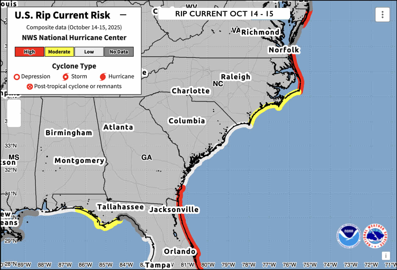 | Advisory # | Advisory Date (UTC) | Name | Position | Direction | Speed (mph) | Pressure (mb) | Winds (mph) | |