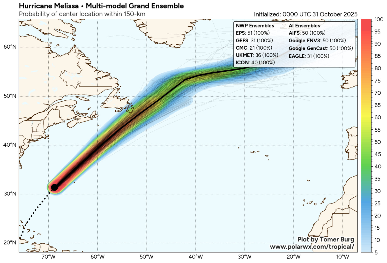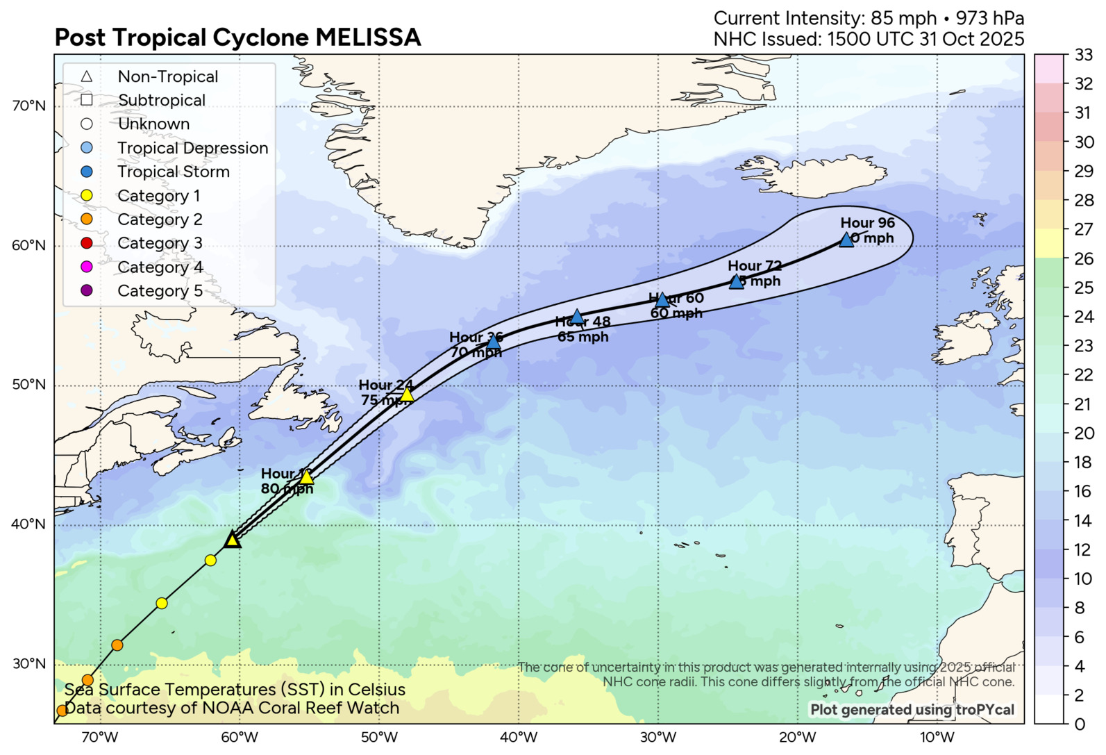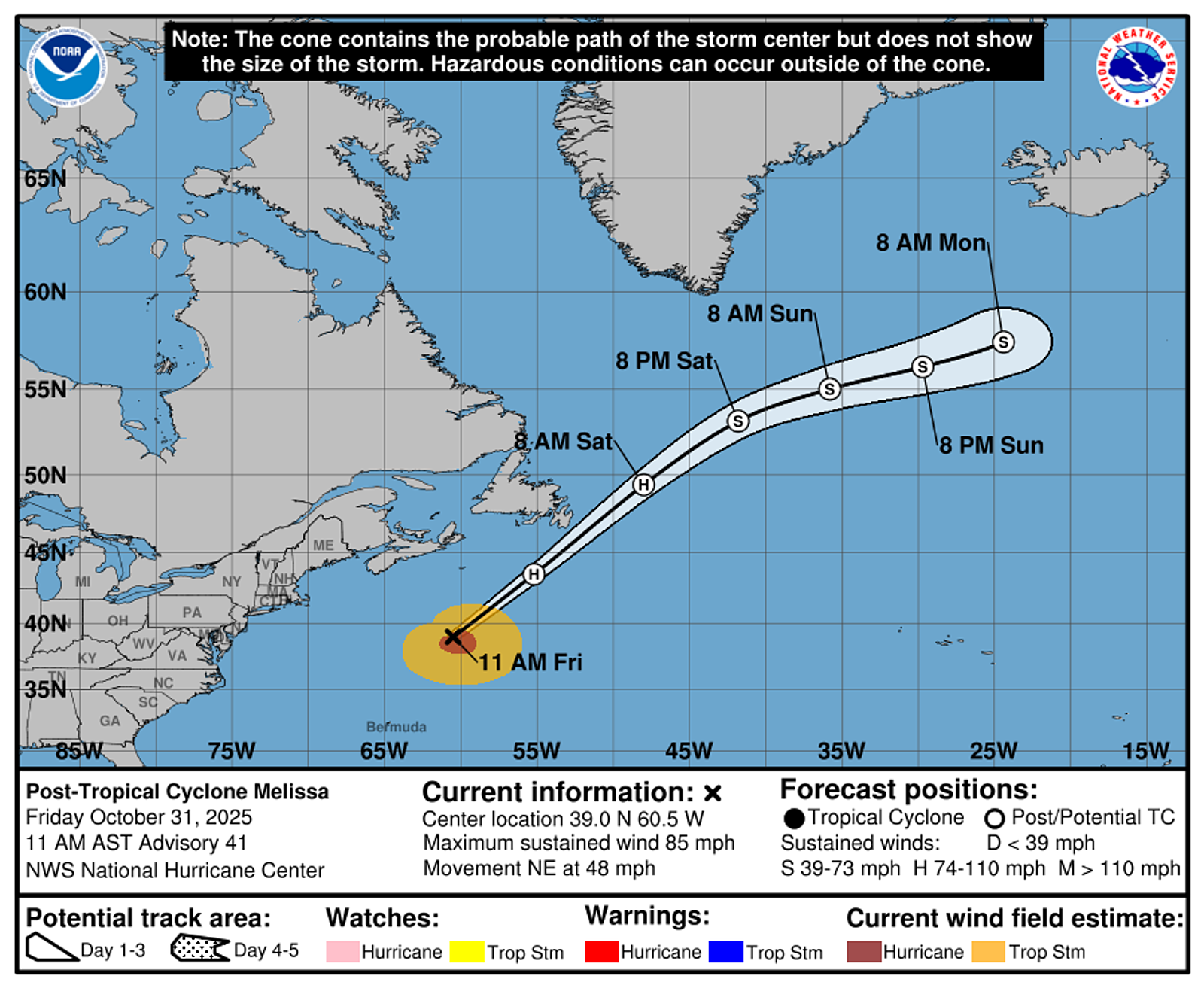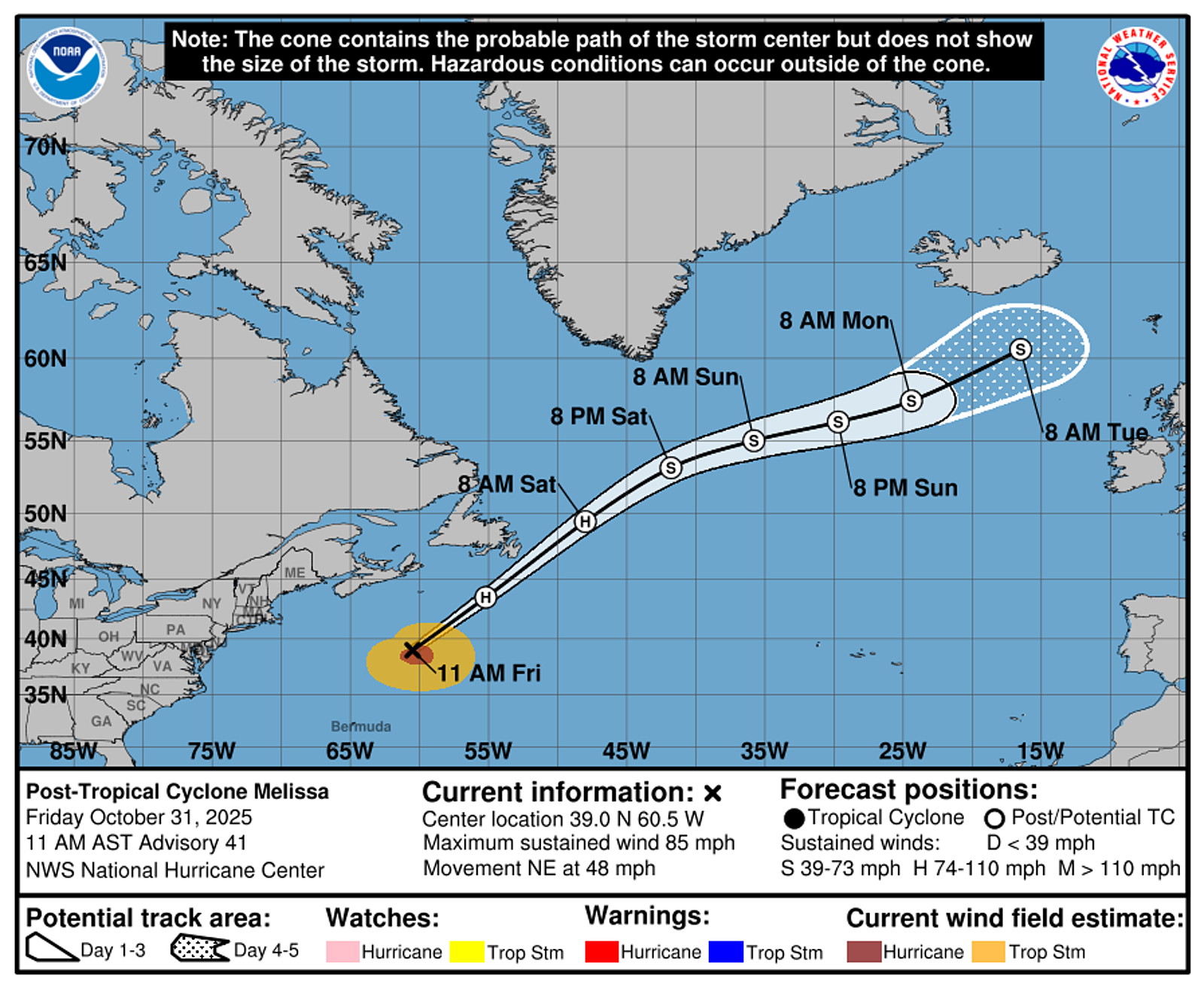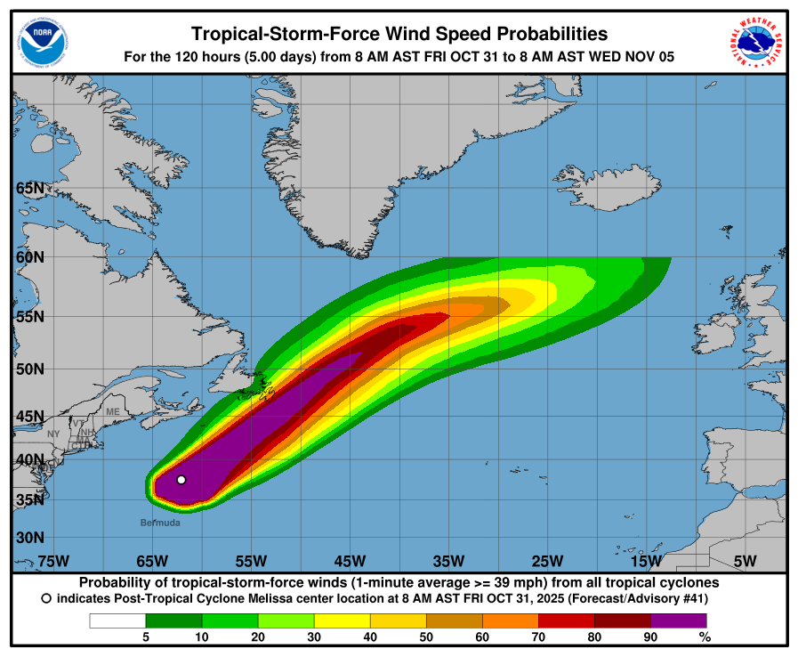 Post-Tropical Cyclone Melissa Tracking Chart
