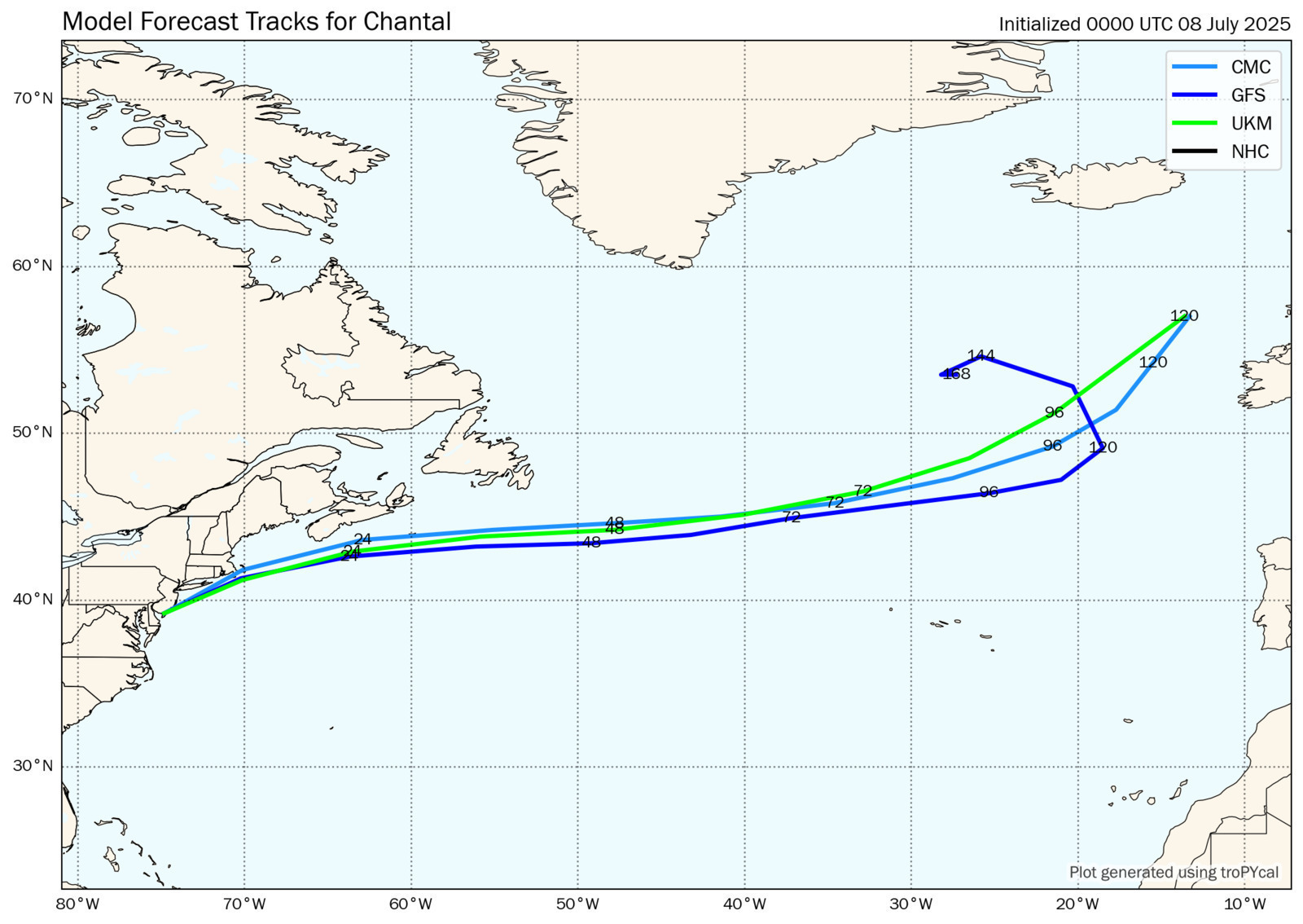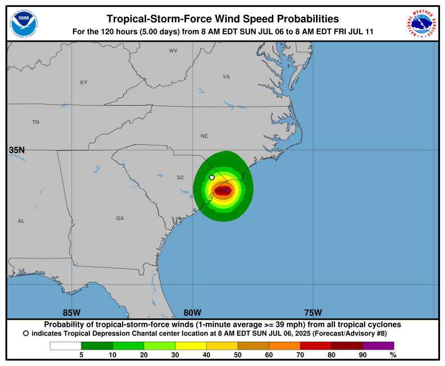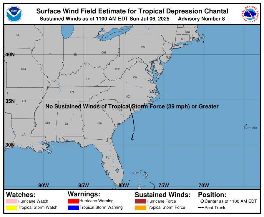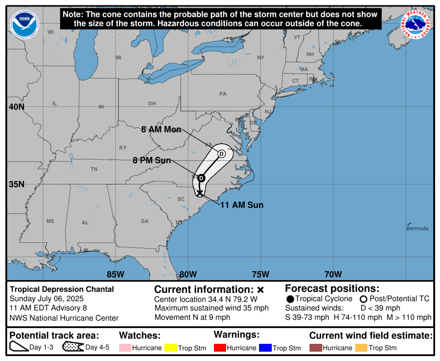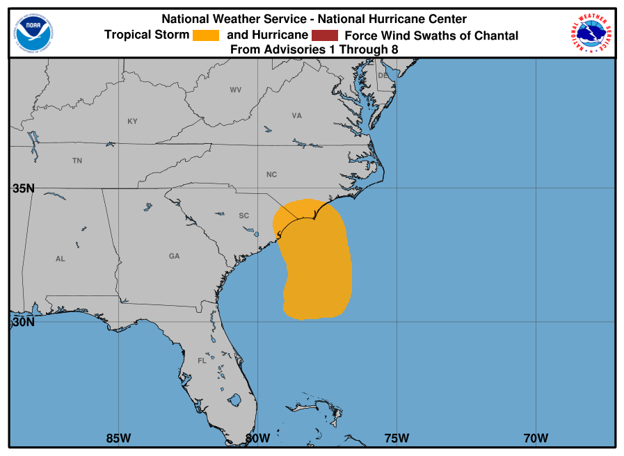 Tropical Depression Chantal Tracking Chart