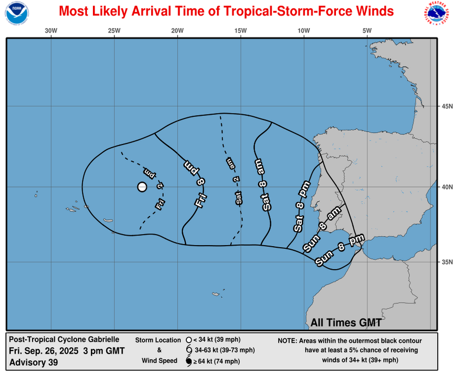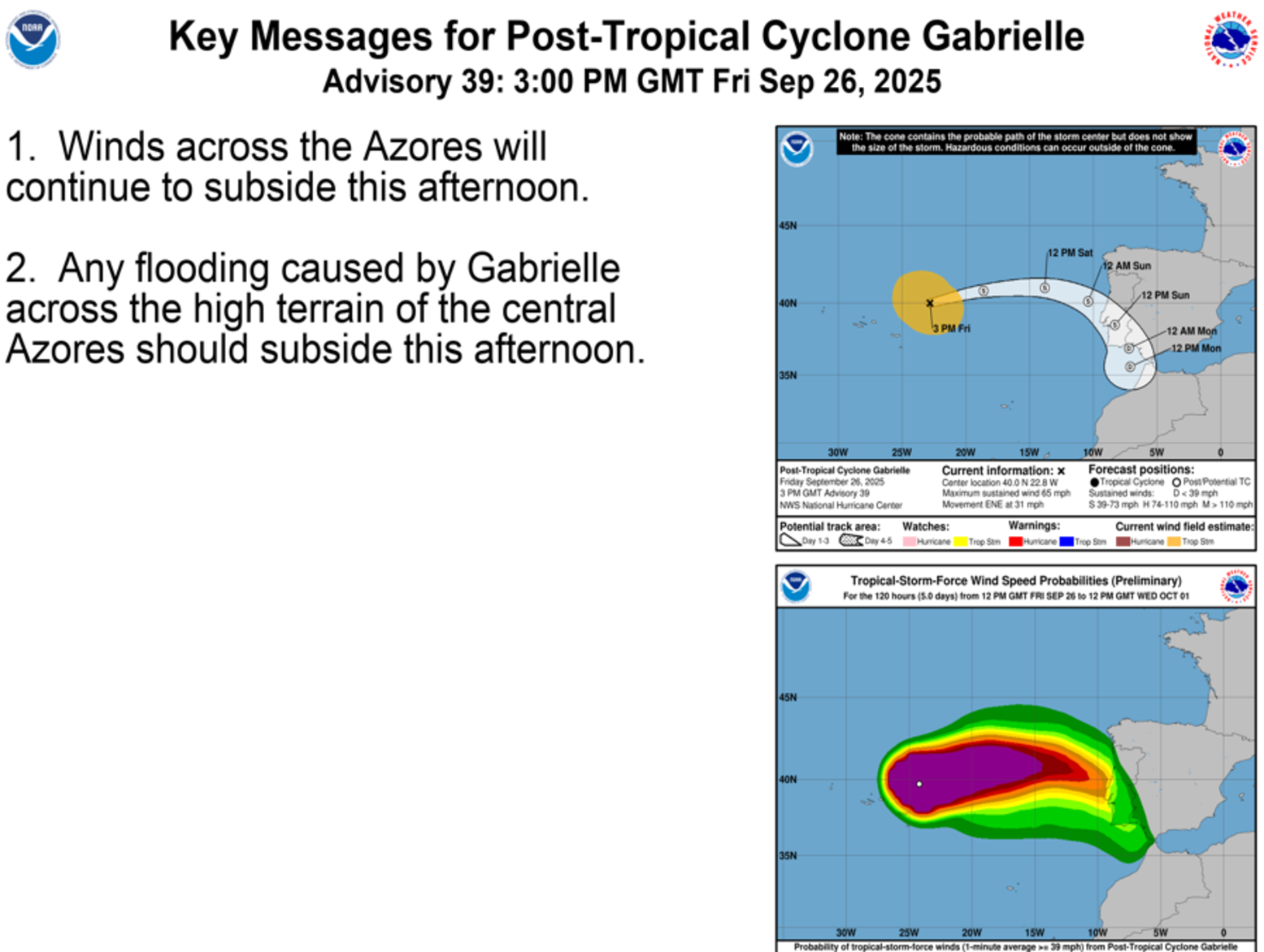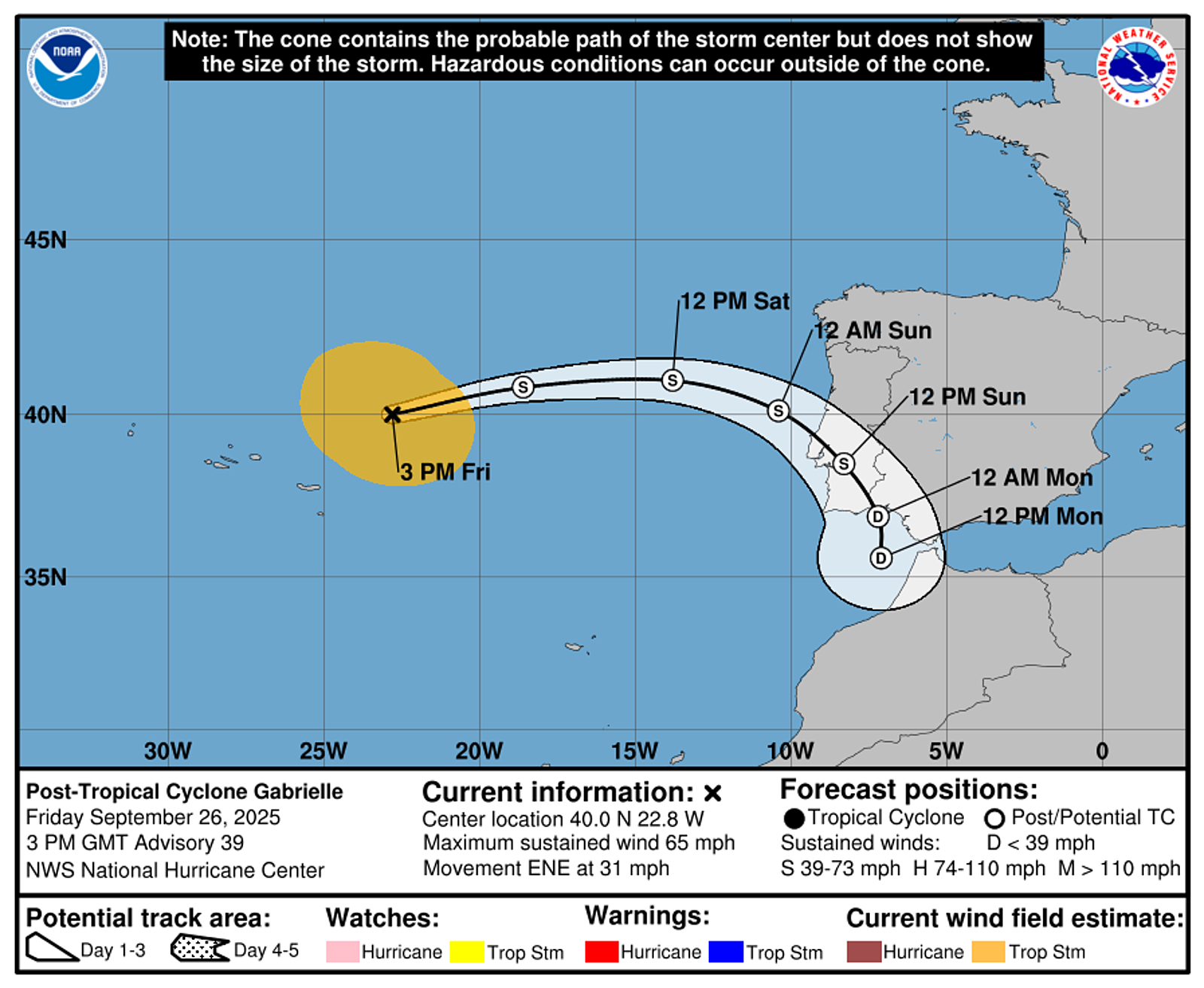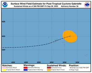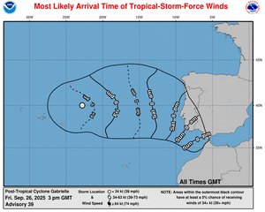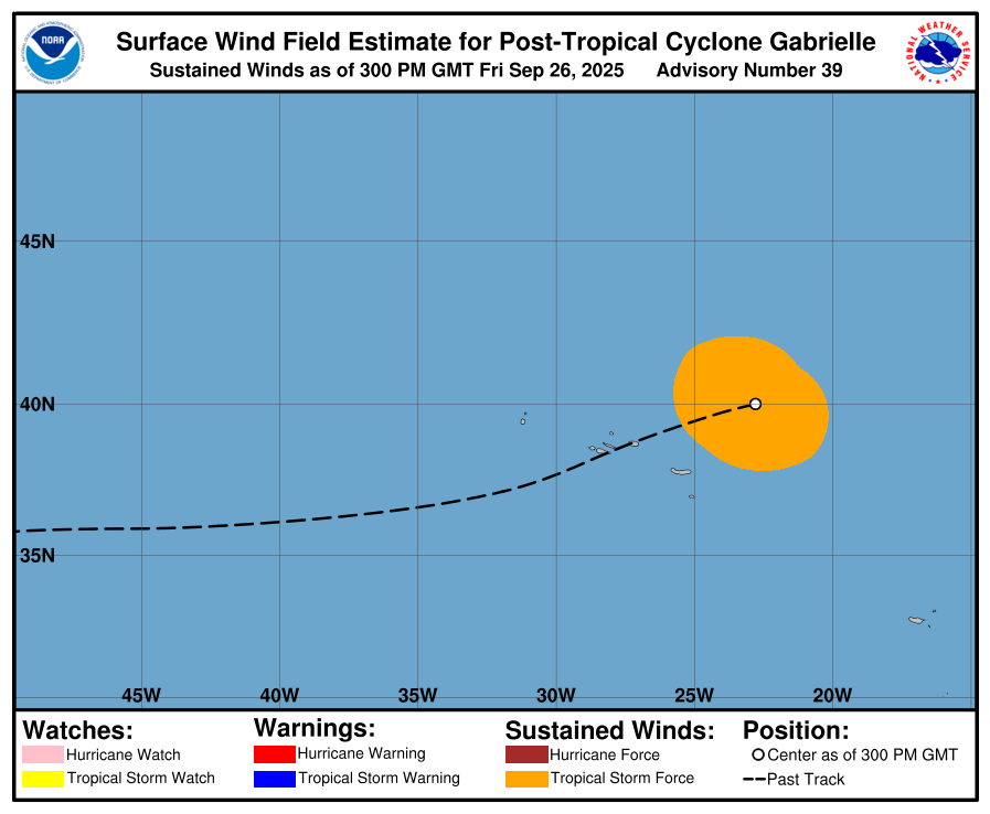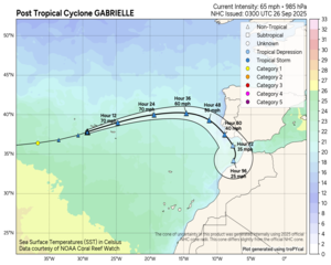 Post-Tropical Cyclone Gabrielle Tracking Chart