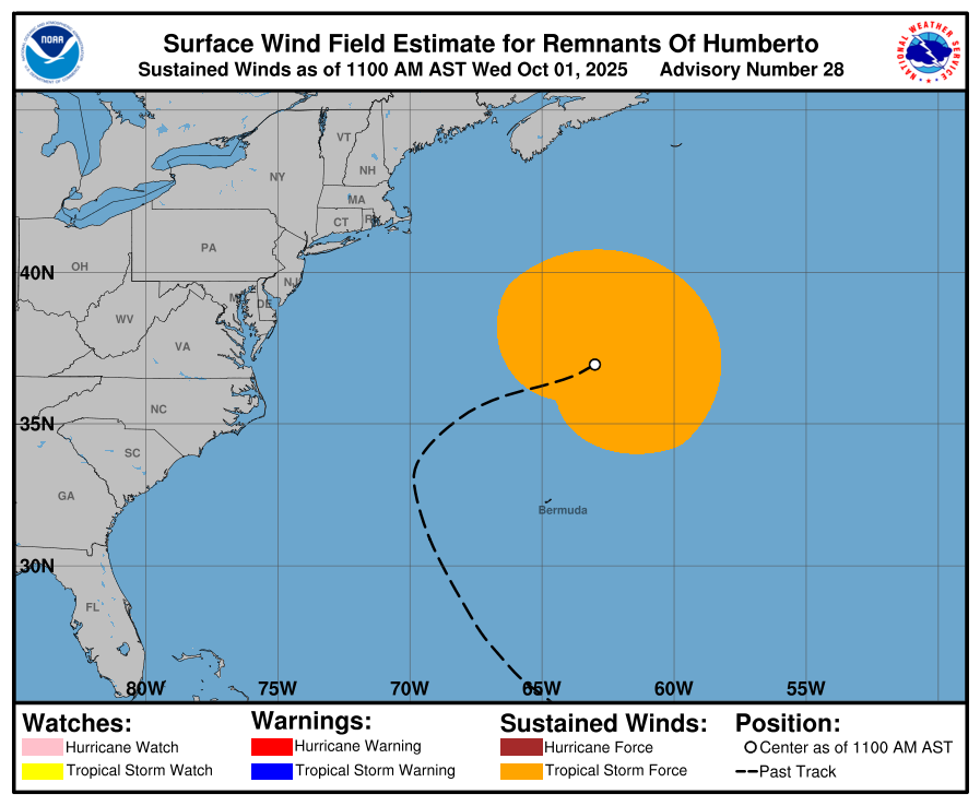 | 1500 UTC WED OCT 1 2025 | 37N | 63W | ENE | 23 | 980 | 70 |