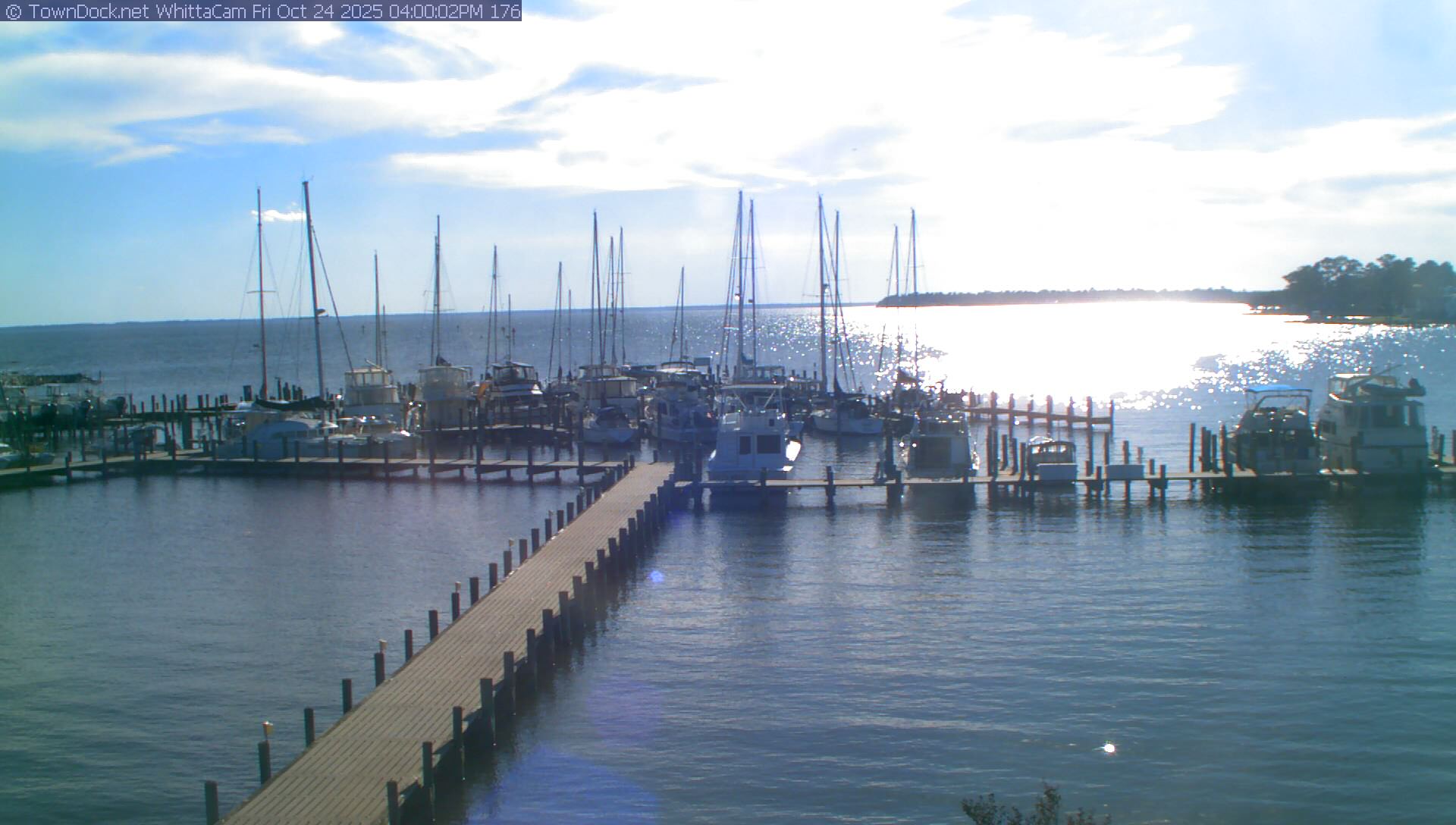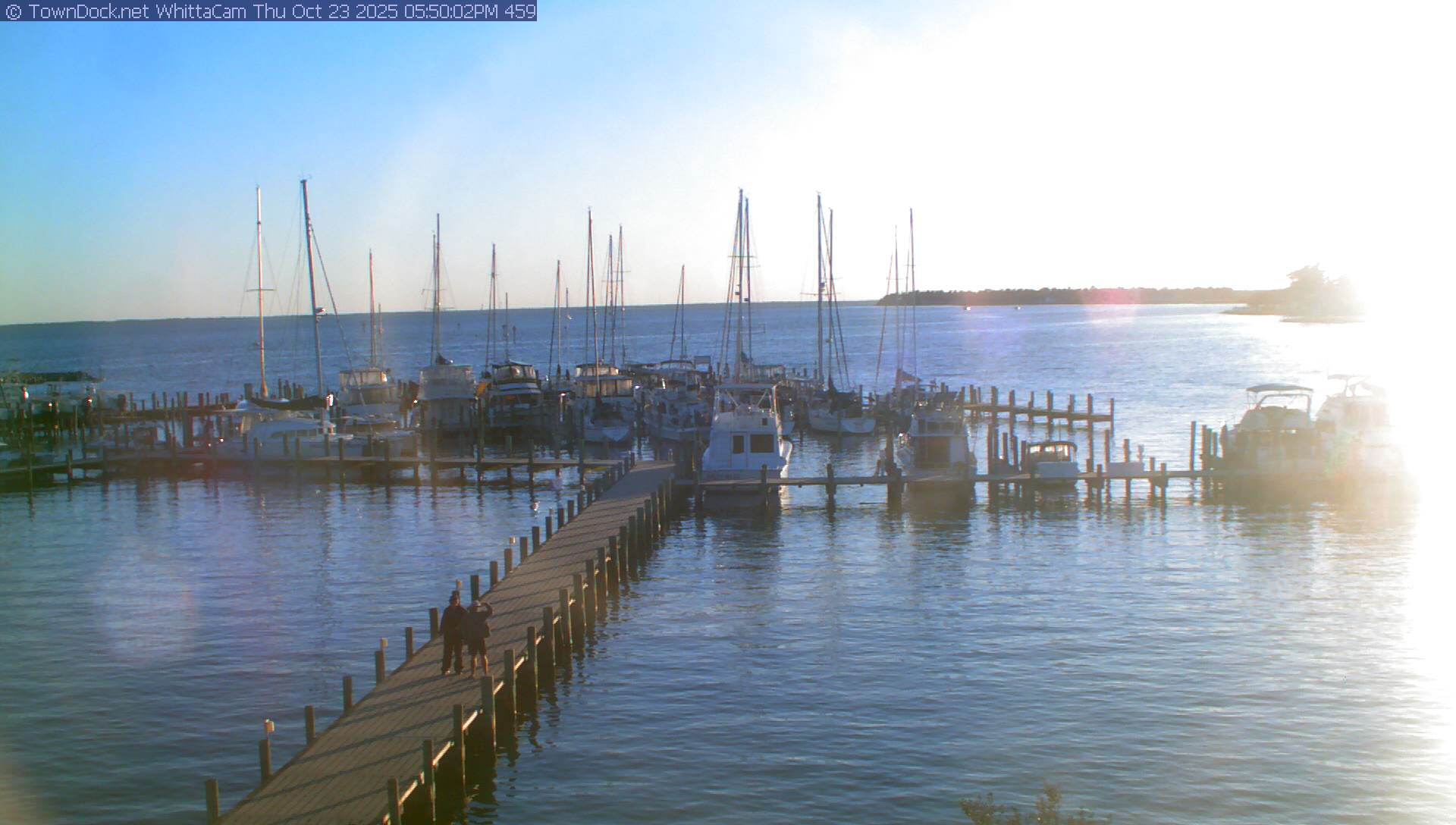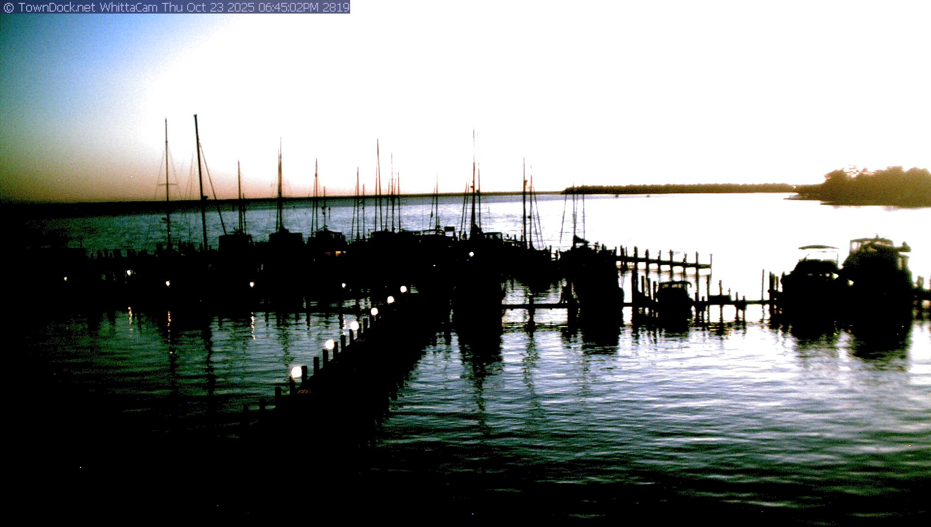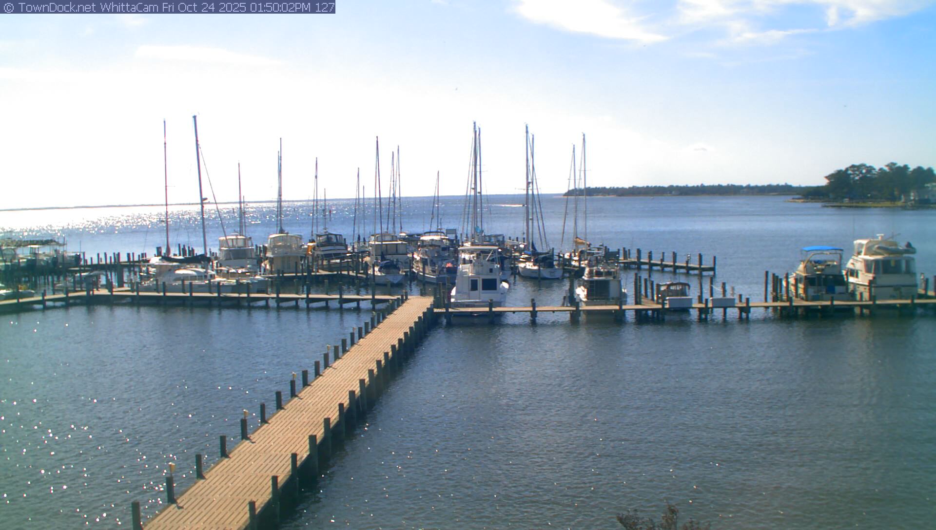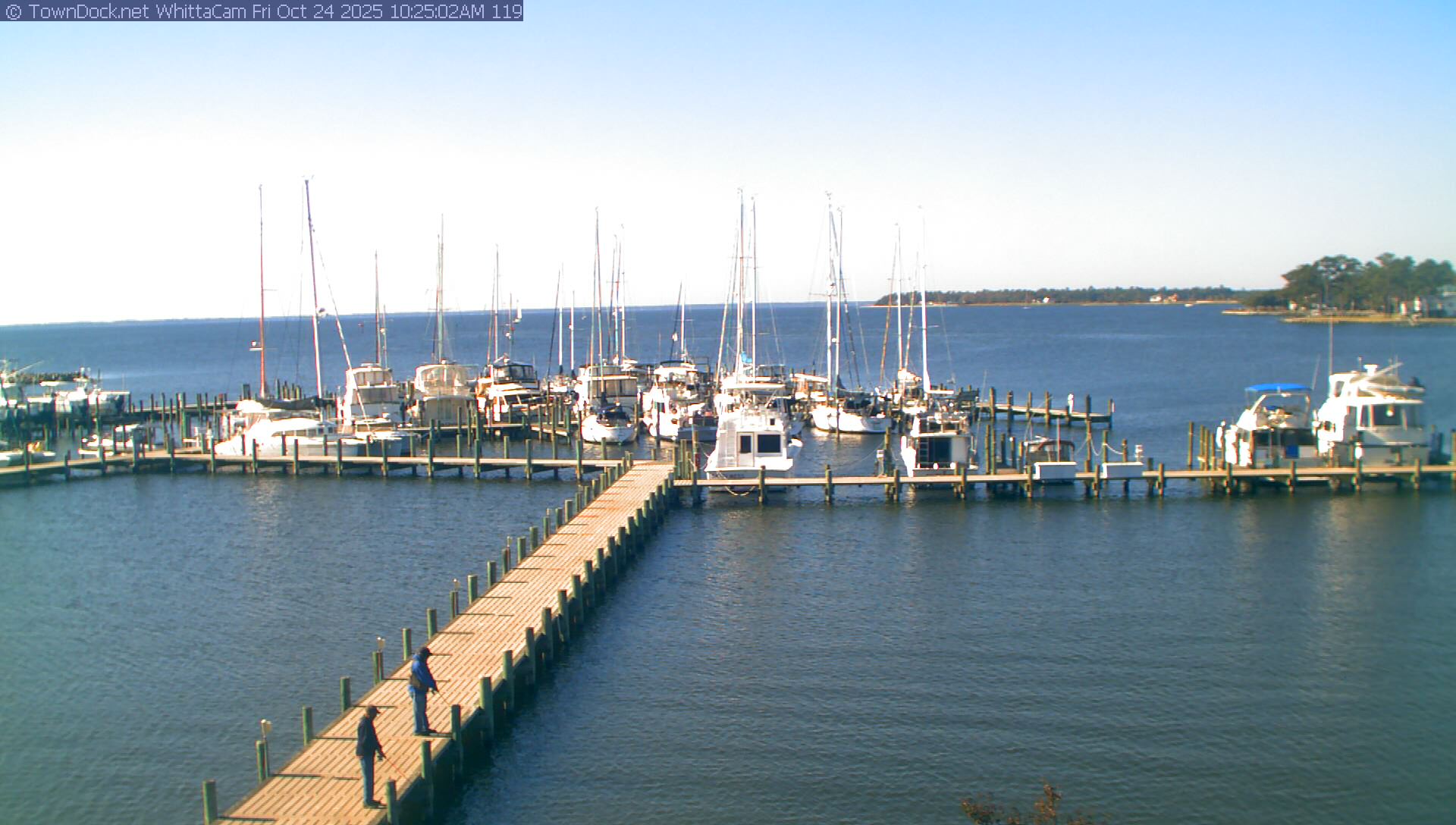 shows Whittaker Pointe Marina and the Whittaker Creek Channel entrance, with the Neuse River in the background. WhittaCam takes a new picture every five minutes from dawn til just before dusk. Click on the image to see a larger version. Once you see that larger version, you can click (see arrow at right) to go back in time and see recent photos. Harbor Cam currently takes photos from 6:30am to 6:40pm.