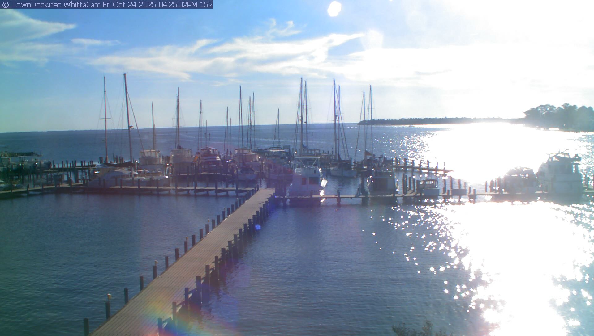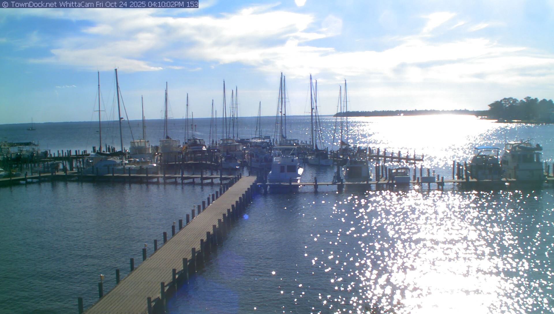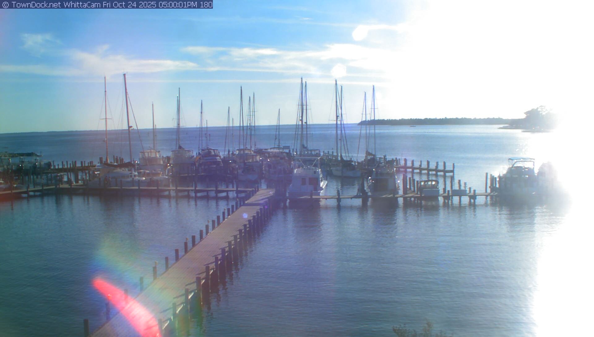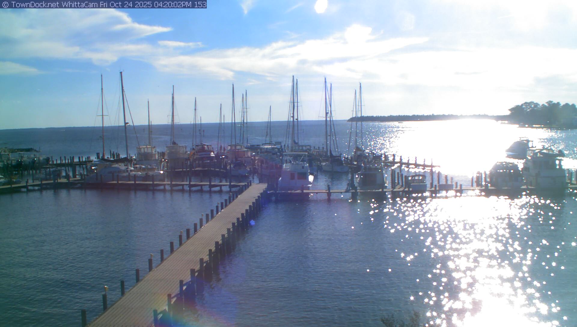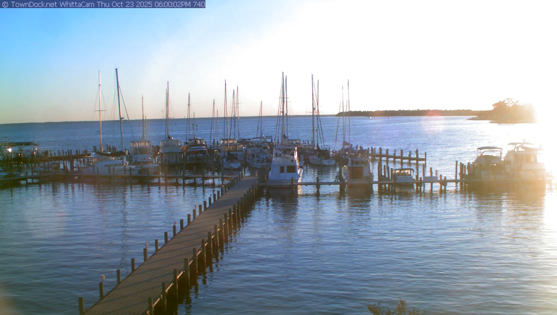 shows Whittaker Pointe Marina and the Whittaker Creek Channel entrance, with the Neuse River in the background. WhittaCam takes a new picture every five minutes from dawn til just before dusk. Click on the image to see a larger version. Once you see that larger version, you can click (see arrow at right) to go back in time and see recent photos. Harbor Cam currently takes photos from 6:30am to 6:40pm.
