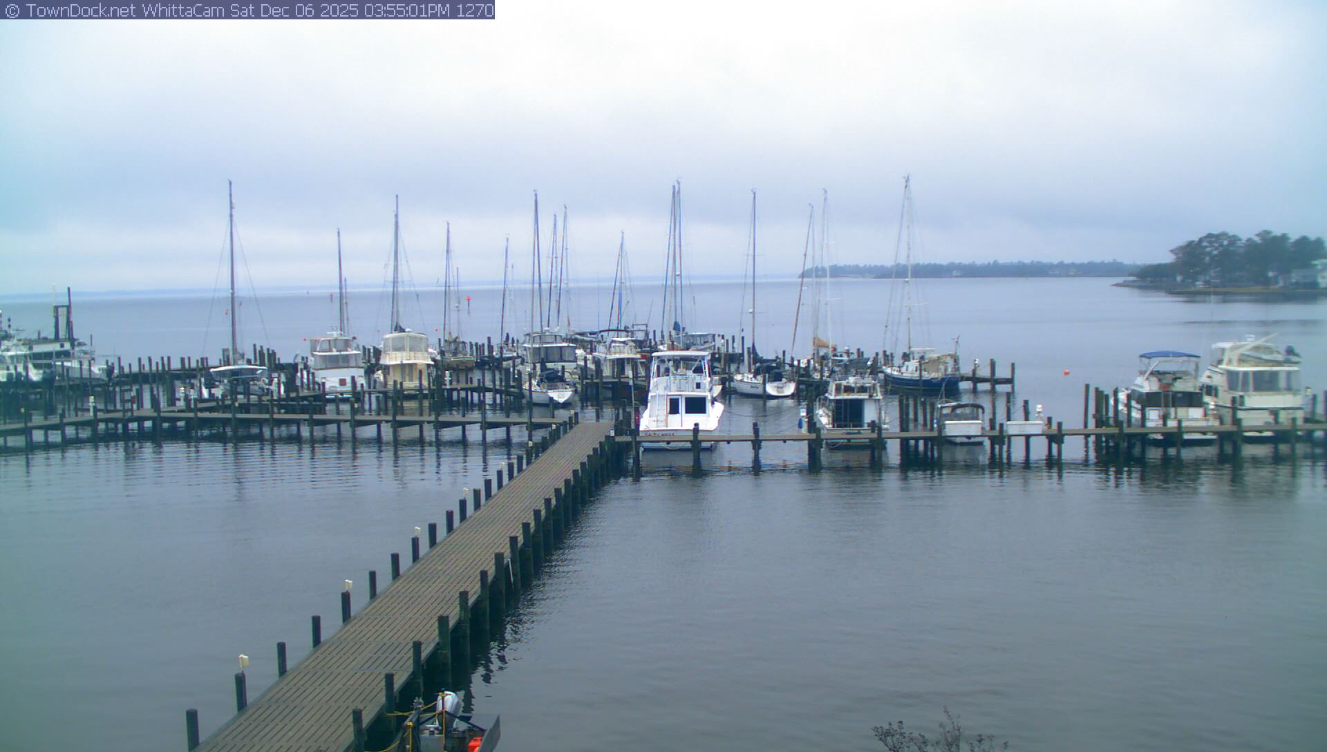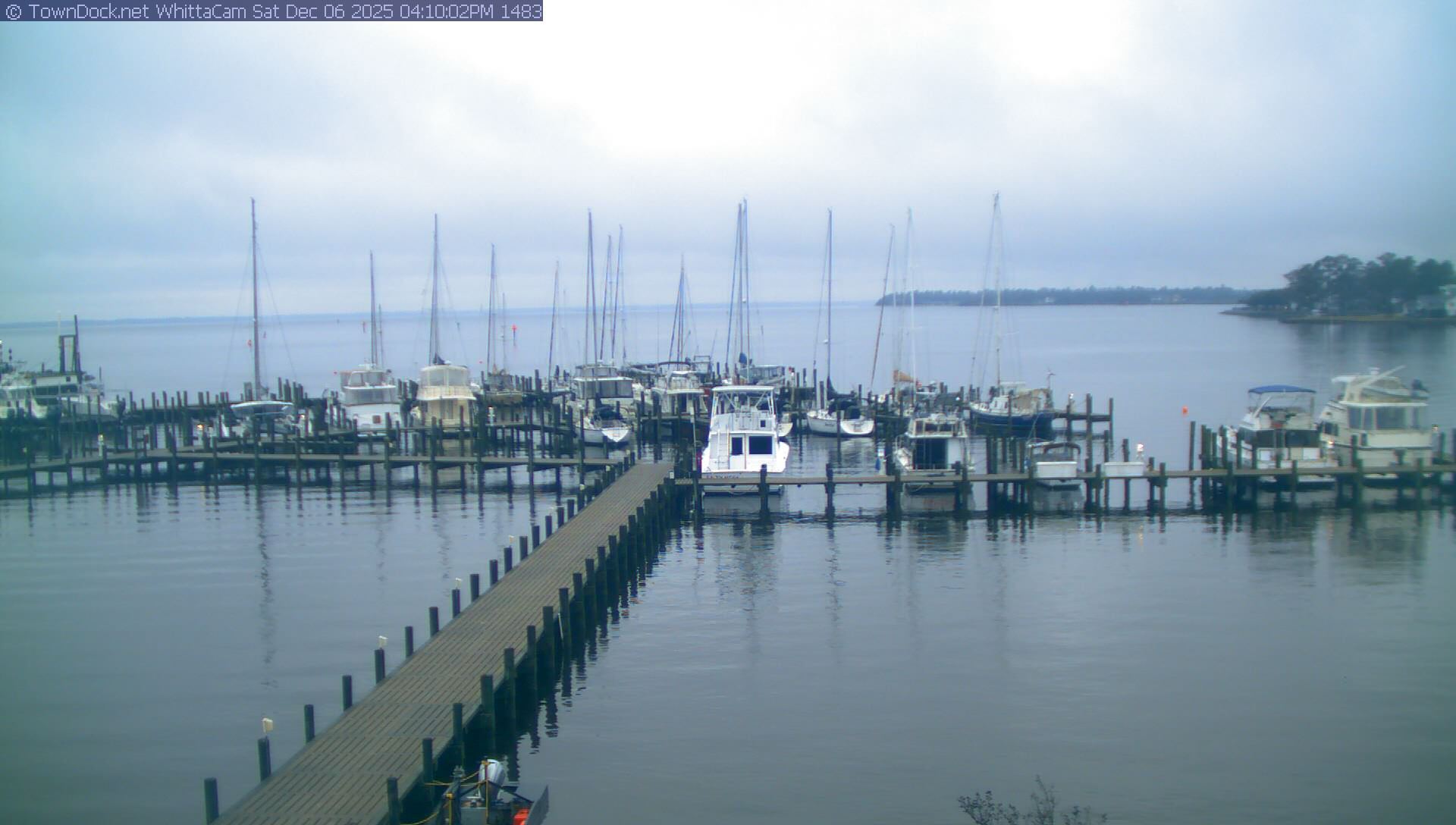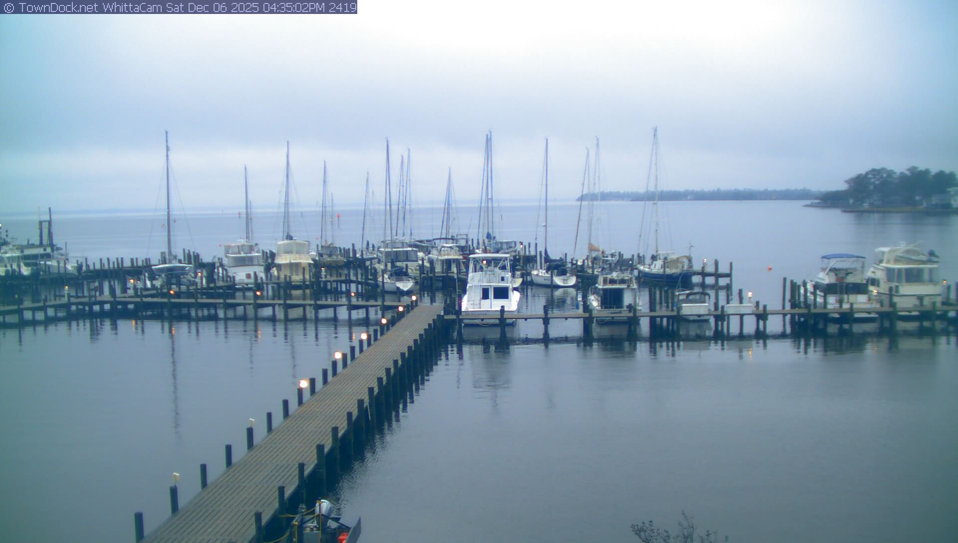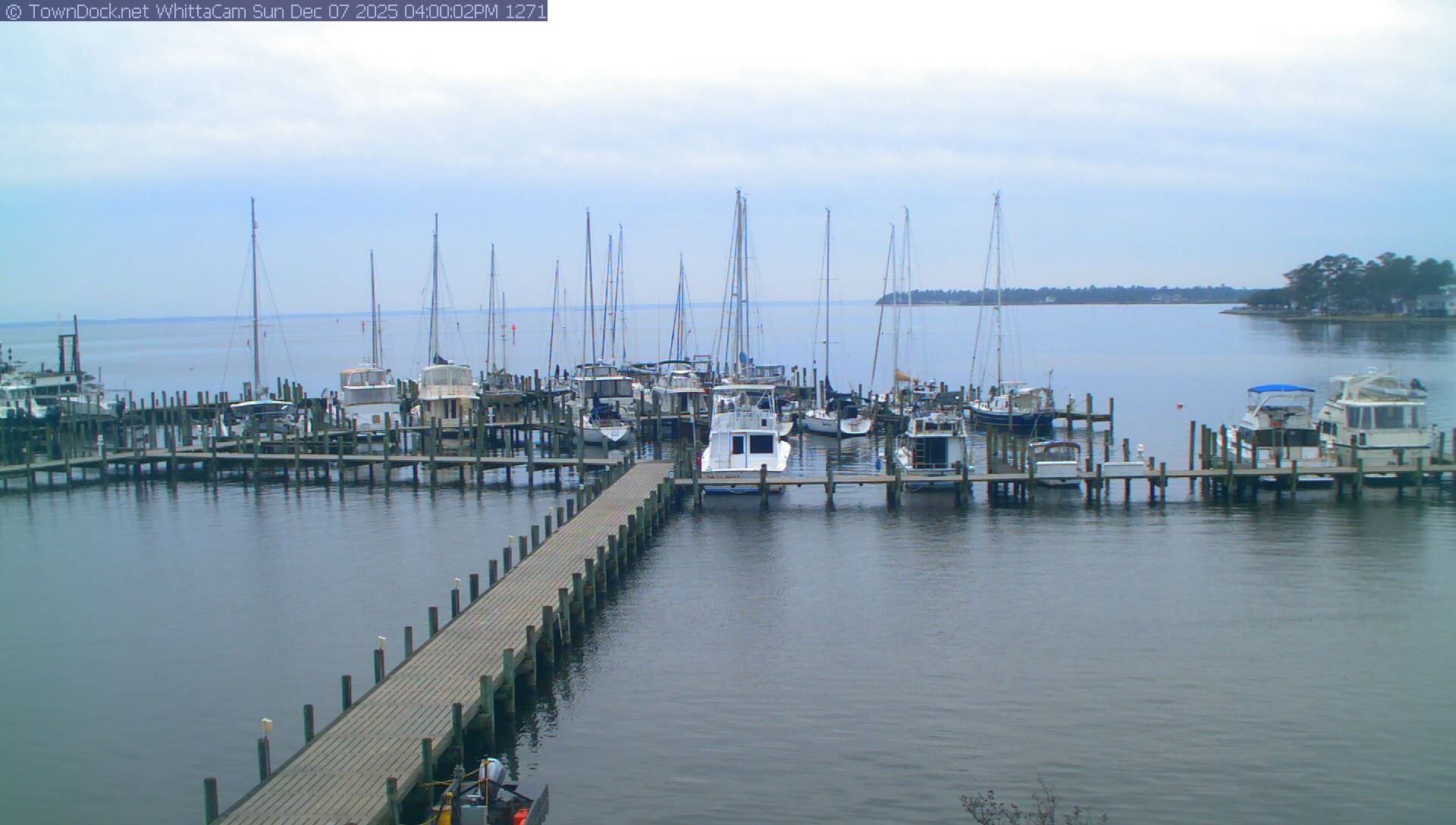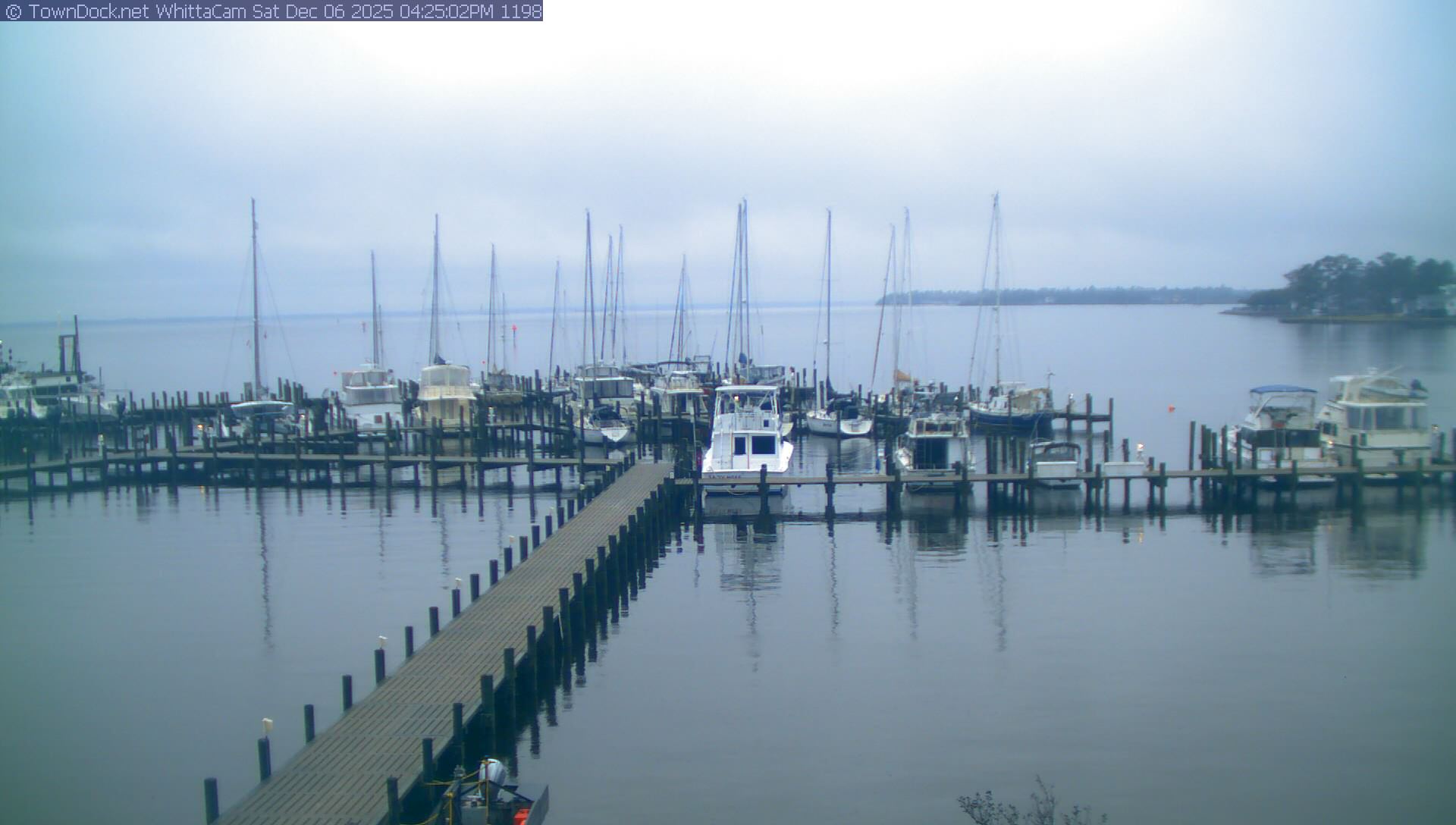 shows Whittaker Pointe Marina and the Whittaker Creek Channel entrance, with the Neuse River in the background. WhittaCam takes a new picture every five minutes from dawn til just before dusk. Click on the image to see a larger version. Once you see that larger version, you can click (see arrow at right) to go back in time and see recent photos. Harbor Cam currently takes photos from 6:00am to 5:20pm.