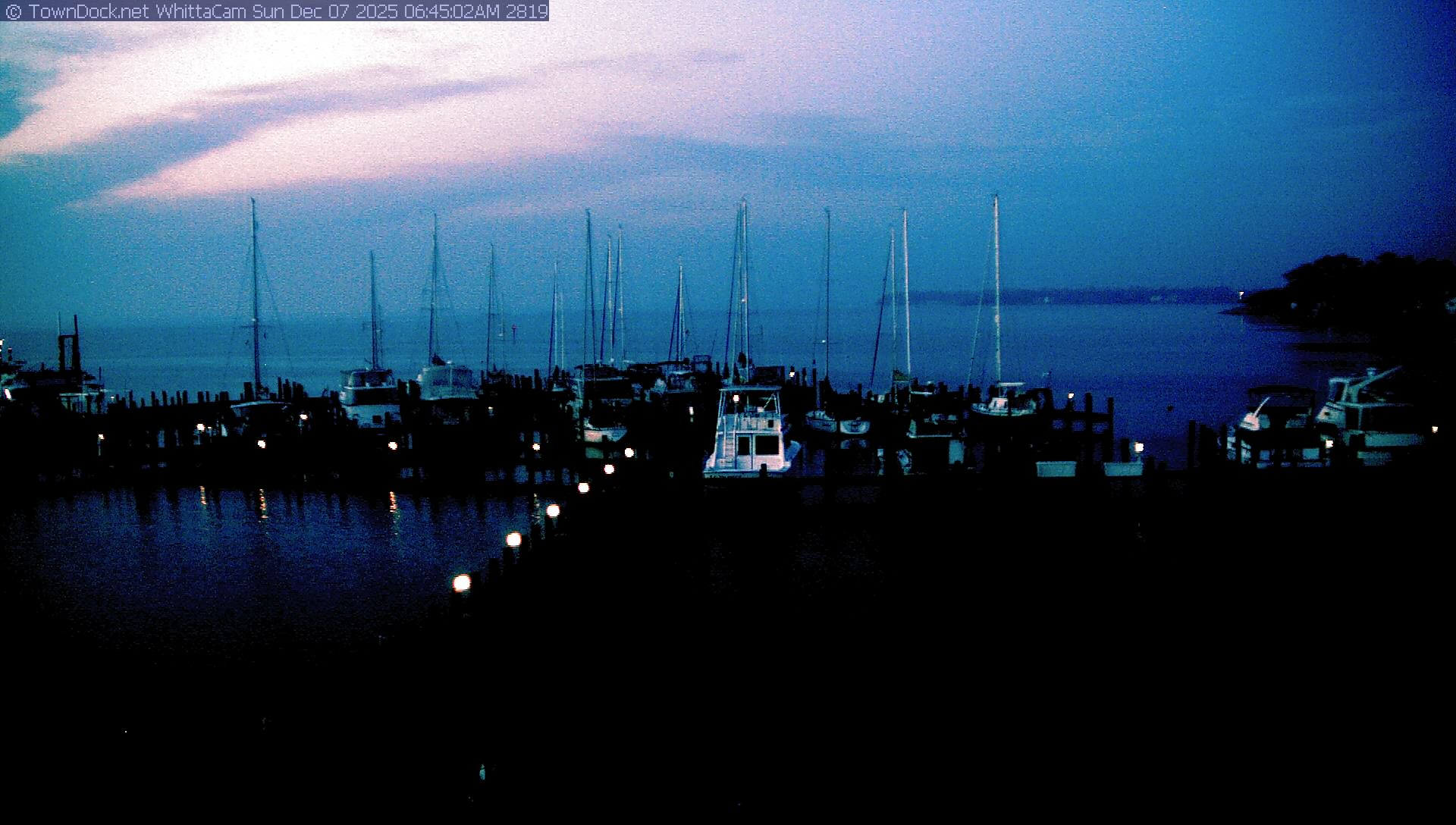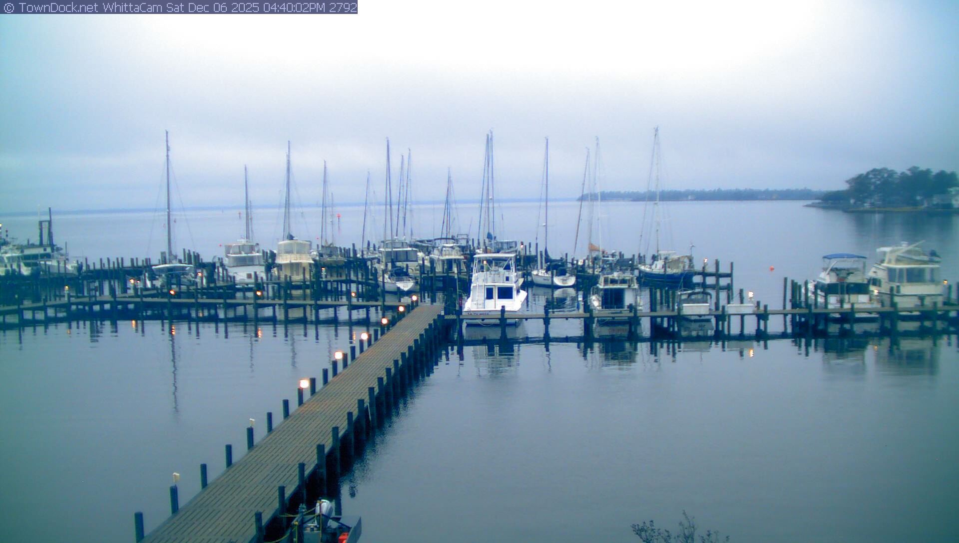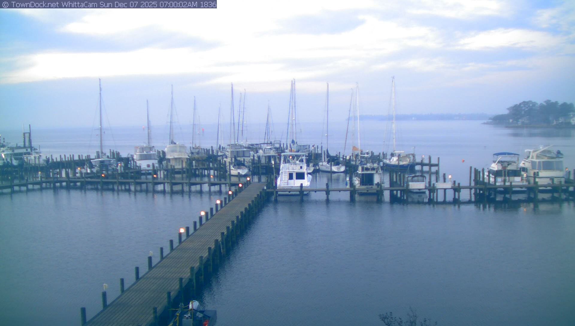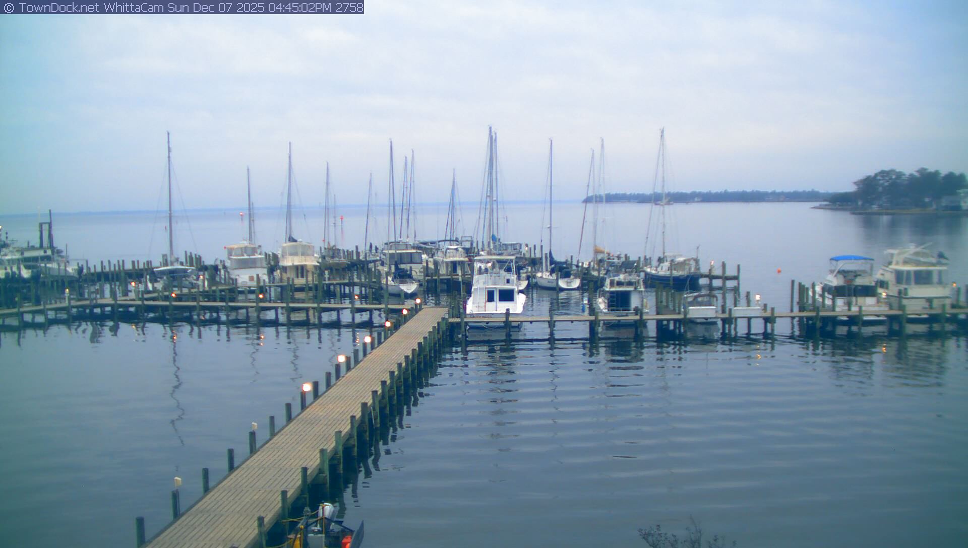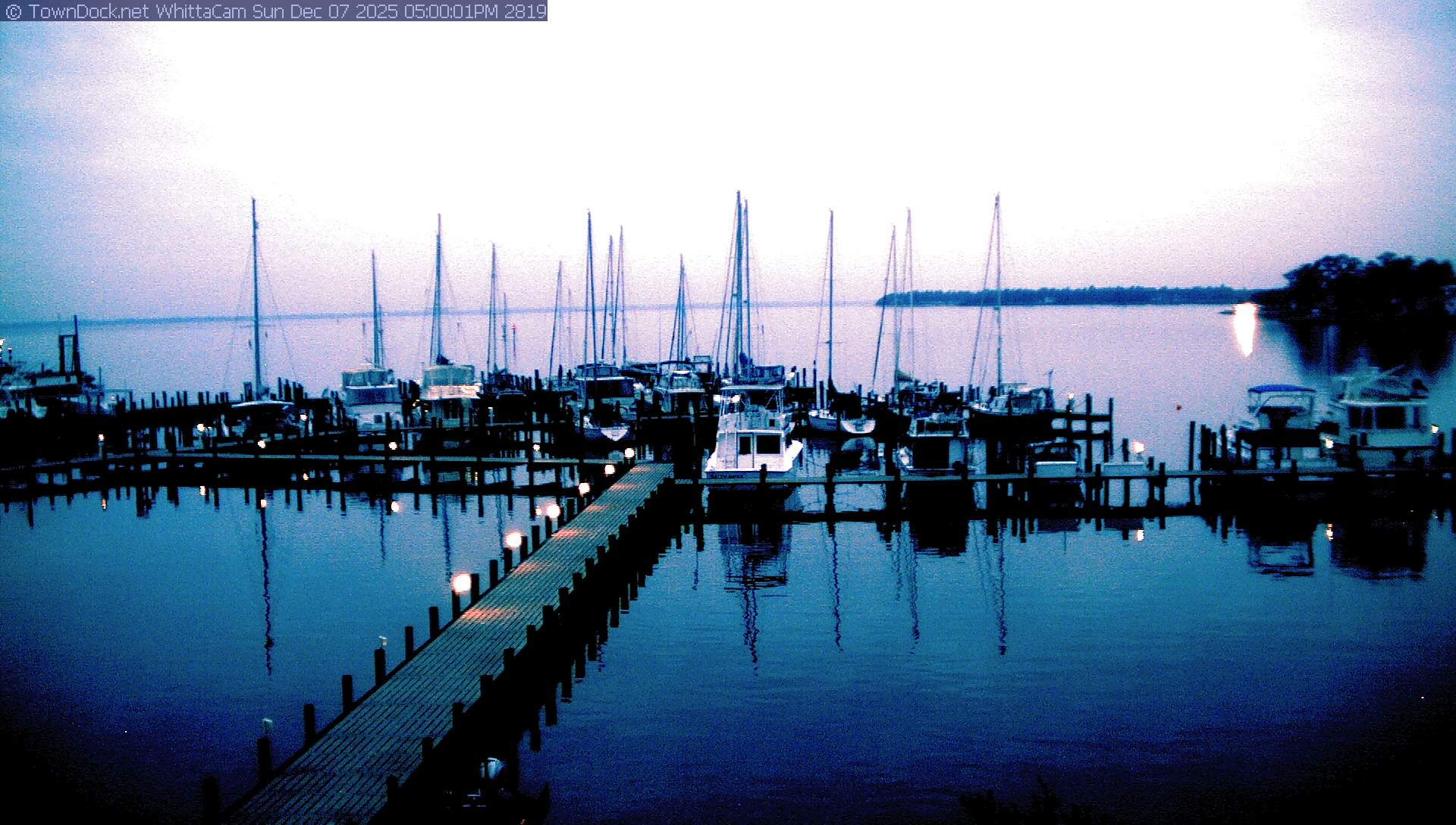 shows Whittaker Pointe Marina and the Whittaker Creek Channel entrance, with the Neuse River in the background. WhittaCam takes a new picture every five minutes from dawn til just before dusk. Click on the image to see a larger version. Once you see that larger version, you can click (see arrow at right) to go back in time and see recent photos. Harbor Cam currently takes photos from 6:00am to 5:20pm.
