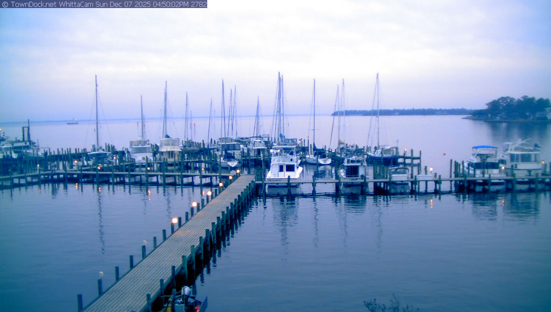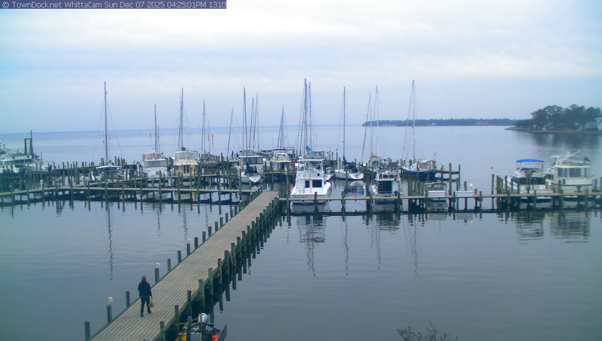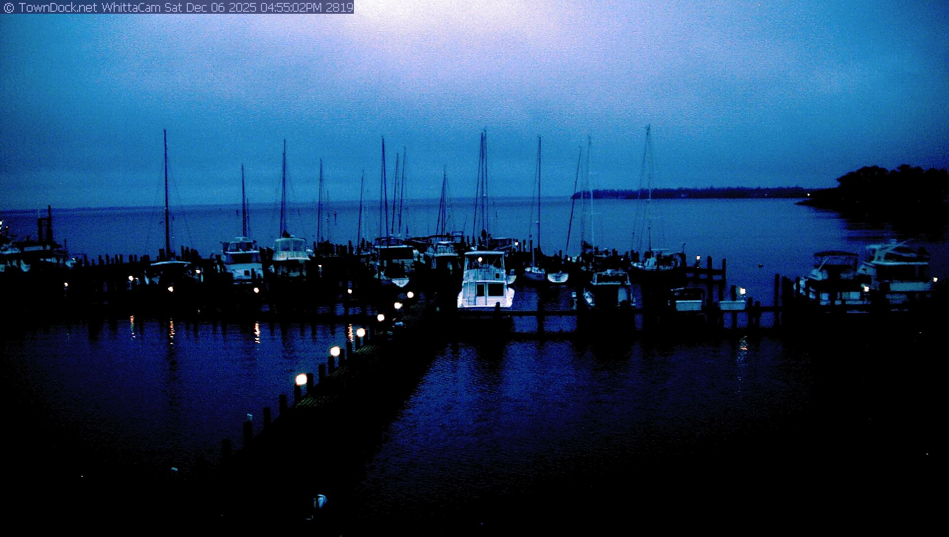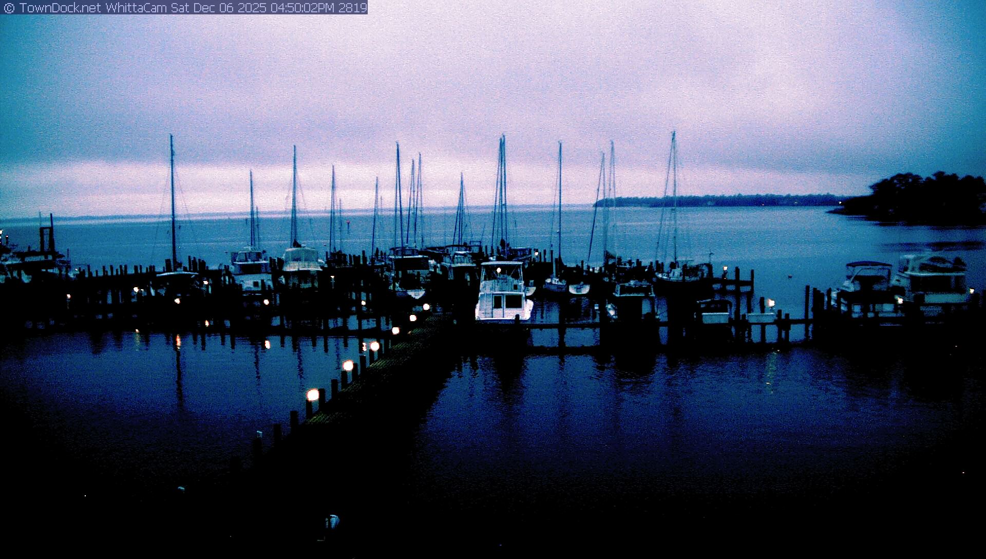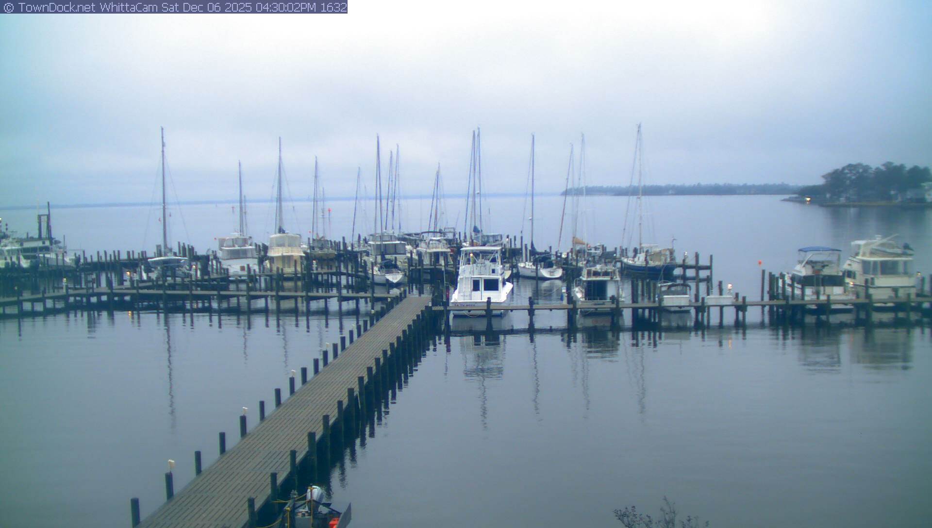 shows Whittaker Pointe Marina and the Whittaker Creek Channel entrance, with the Neuse River in the background. WhittaCam takes a new picture every five minutes from dawn til just before dusk. Click on the image to see a larger version. Once you see that larger version, you can click (see arrow at right) to go back in time and see recent photos. Harbor Cam currently takes photos from 6:00am to 5:20pm.