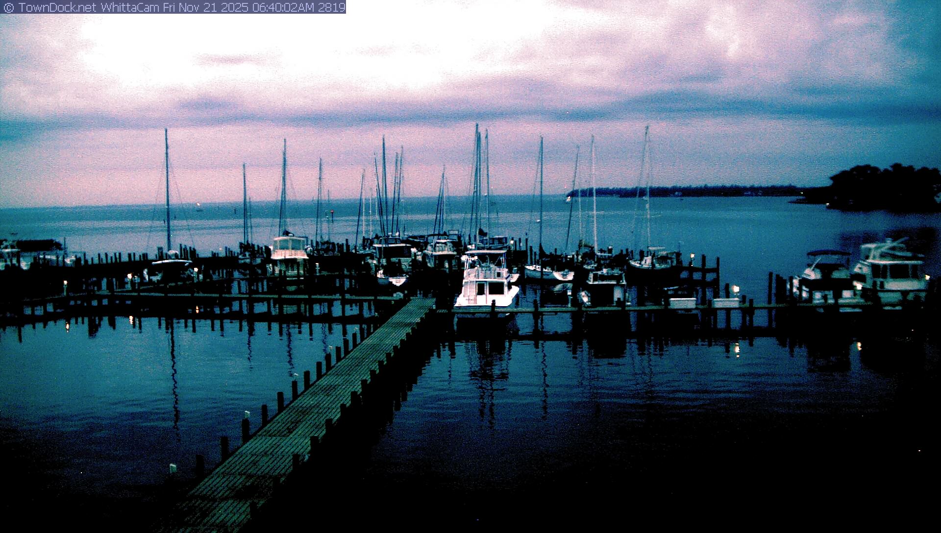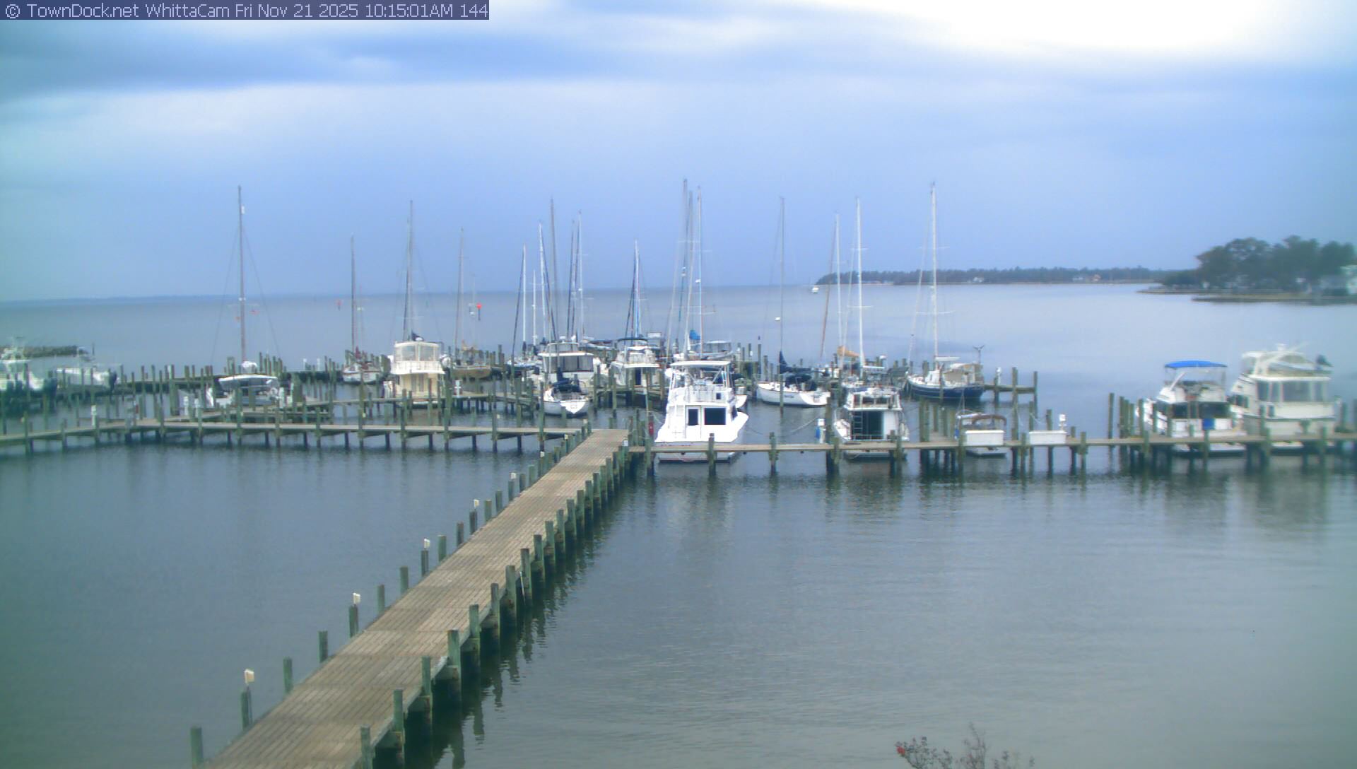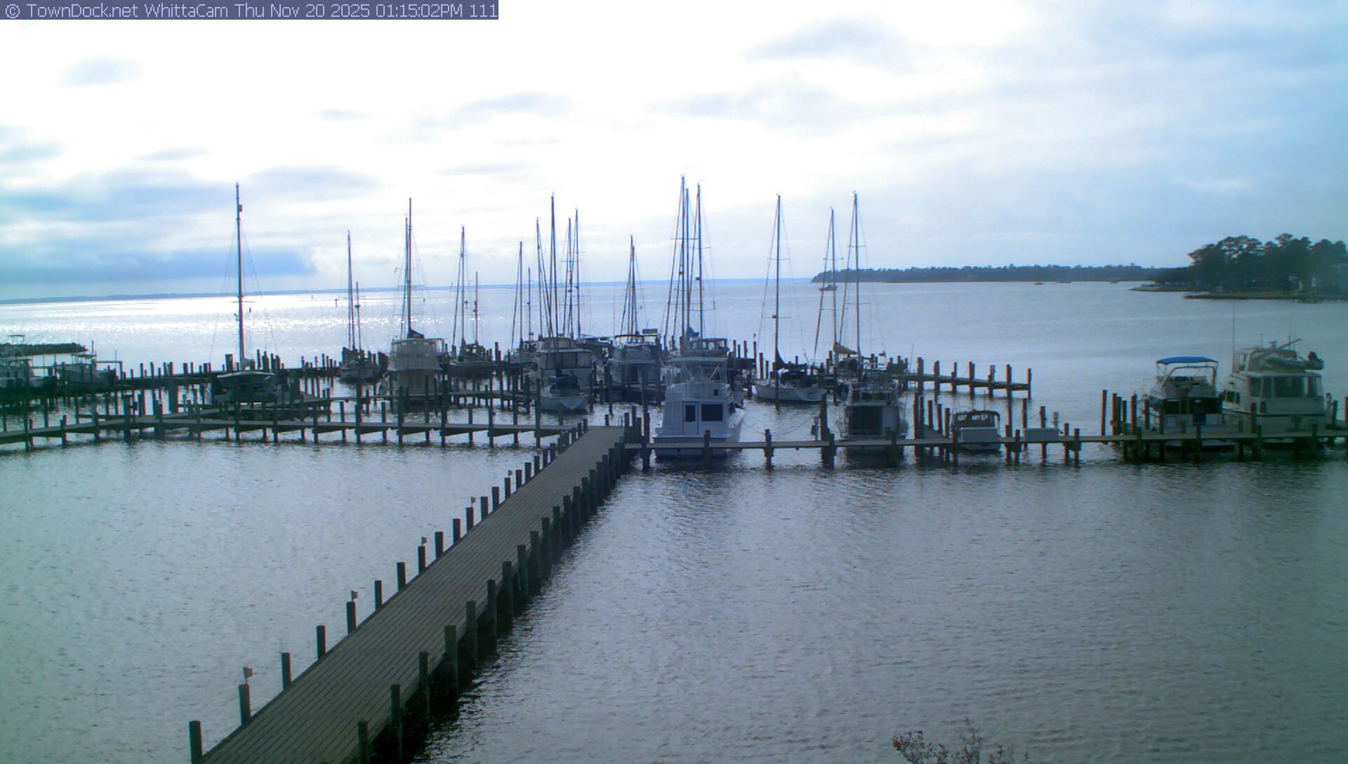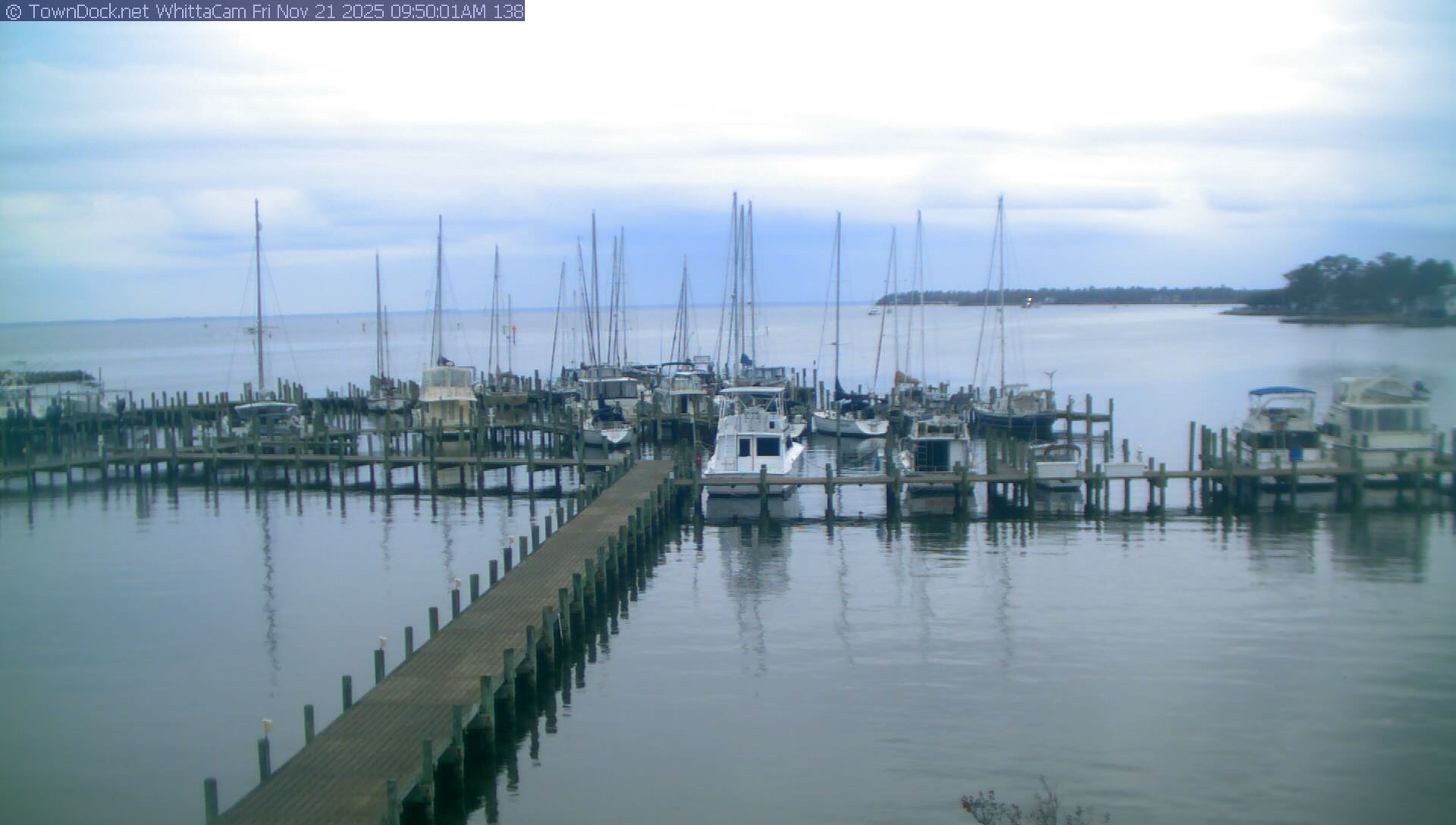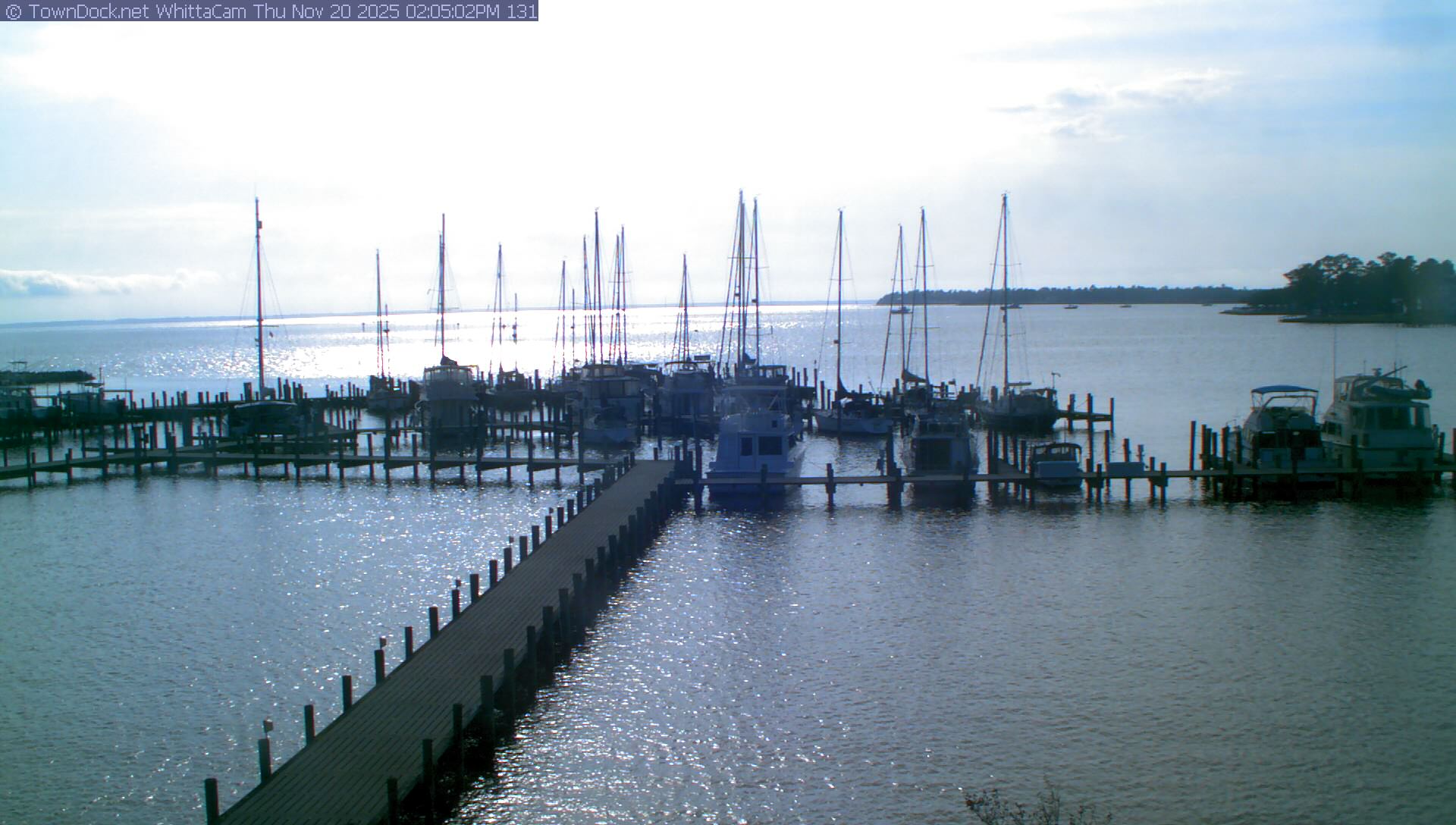 shows Whittaker Pointe Marina and the Whittaker Creek Channel entrance, with the Neuse River in the background. WhittaCam takes a new picture every five minutes from dawn til just before dusk. Click on the image to see a larger version. Once you see that larger version, you can click (see arrow at right) to go back in time and see recent photos. Harbor Cam currently takes photos from 6:30am to 5:00pm.
