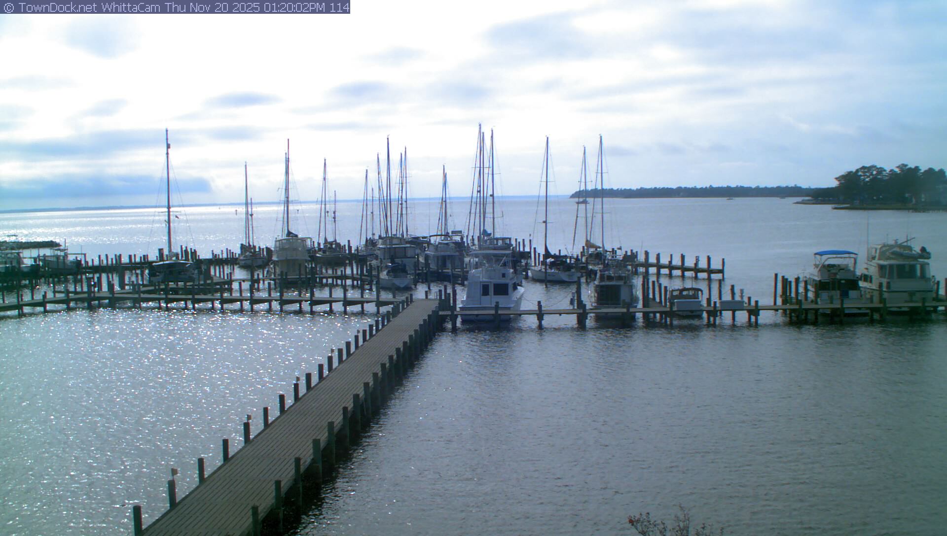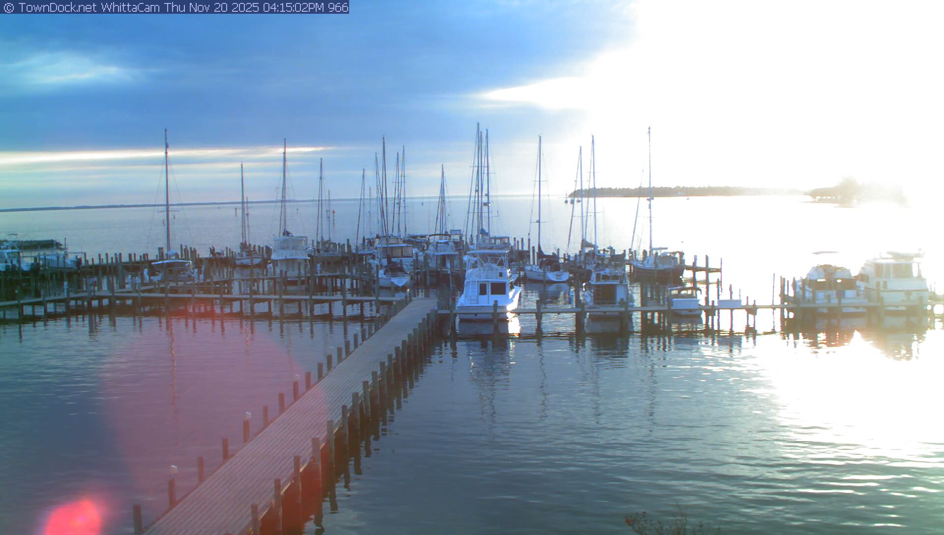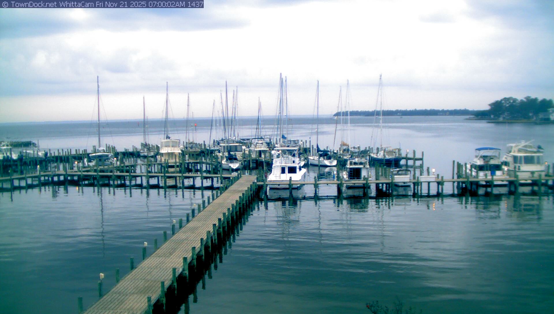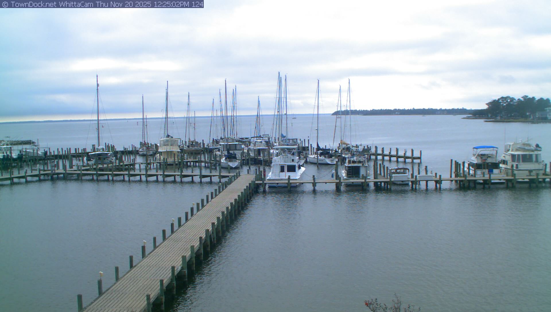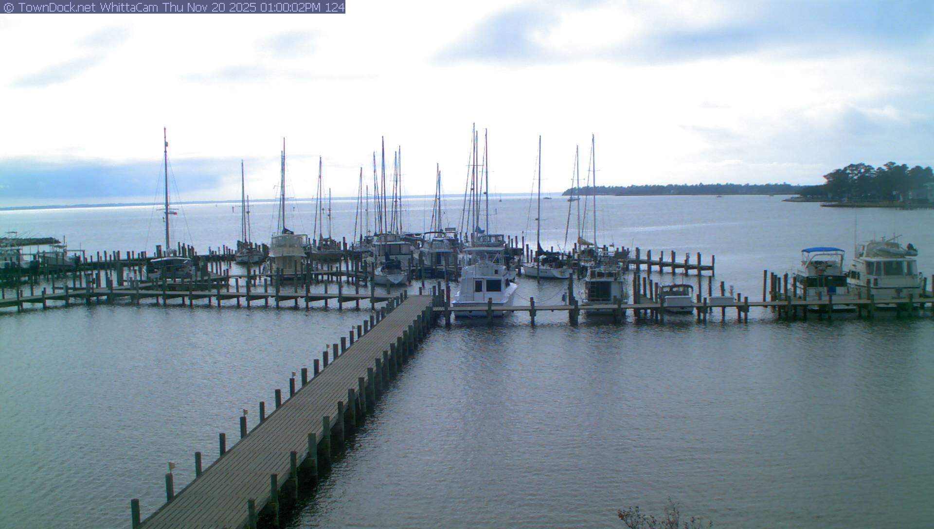 shows Whittaker Pointe Marina and the Whittaker Creek Channel entrance, with the Neuse River in the background. WhittaCam takes a new picture every five minutes from dawn til just before dusk. Click on the image to see a larger version. Once you see that larger version, you can click (see arrow at right) to go back in time and see recent photos. Harbor Cam currently takes photos from 6:30am to 5:00pm.