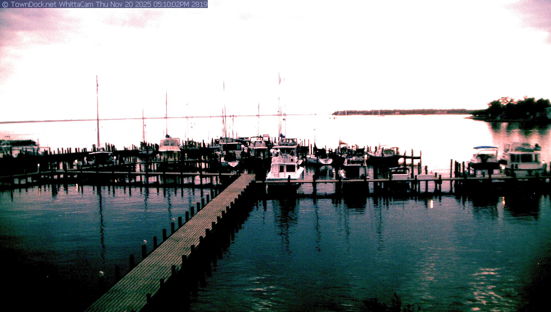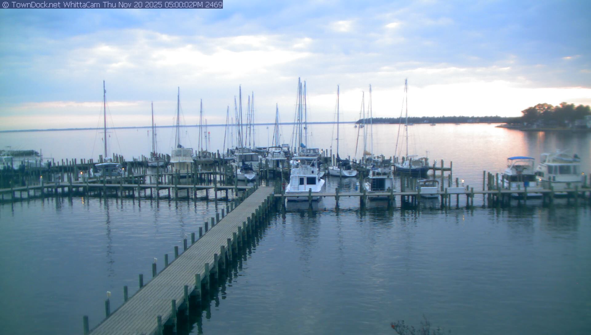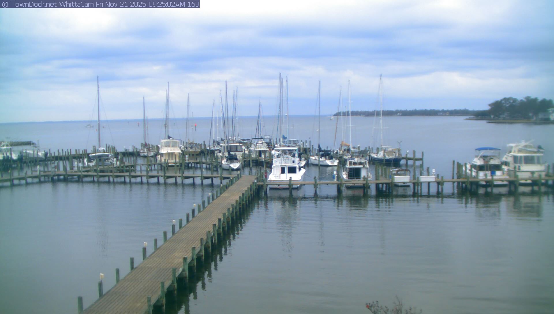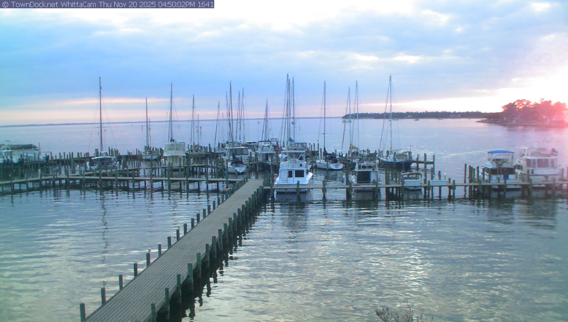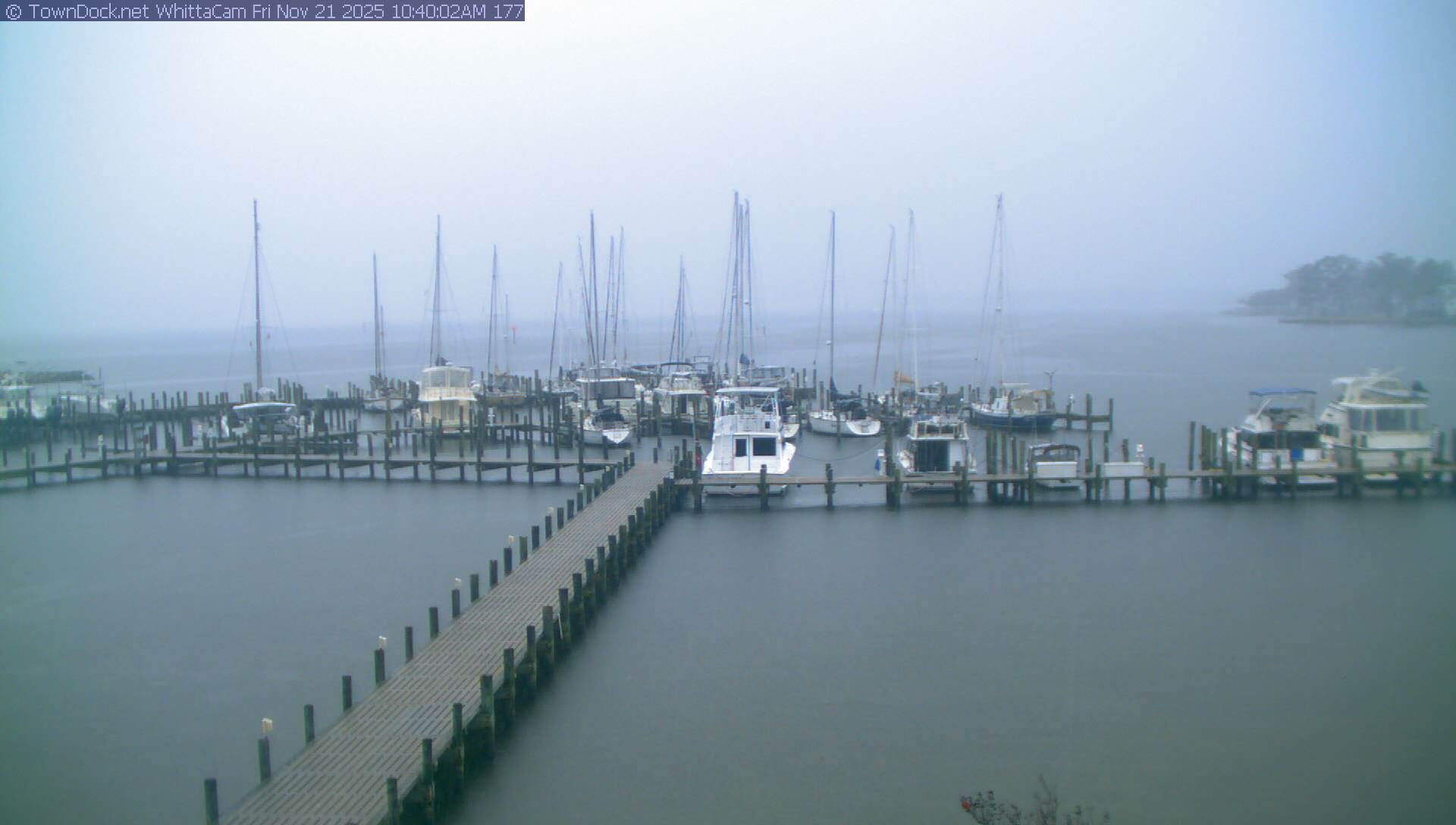 shows Whittaker Pointe Marina and the Whittaker Creek Channel entrance, with the Neuse River in the background. WhittaCam takes a new picture every five minutes from dawn til just before dusk. Click on the image to see a larger version. Once you see that larger version, you can click (see arrow at right) to go back in time and see recent photos. Harbor Cam currently takes photos from 6:30am to 5:00pm.