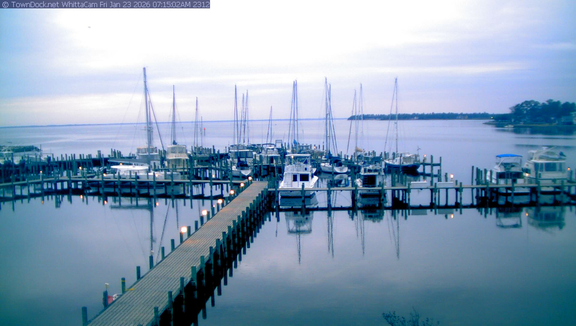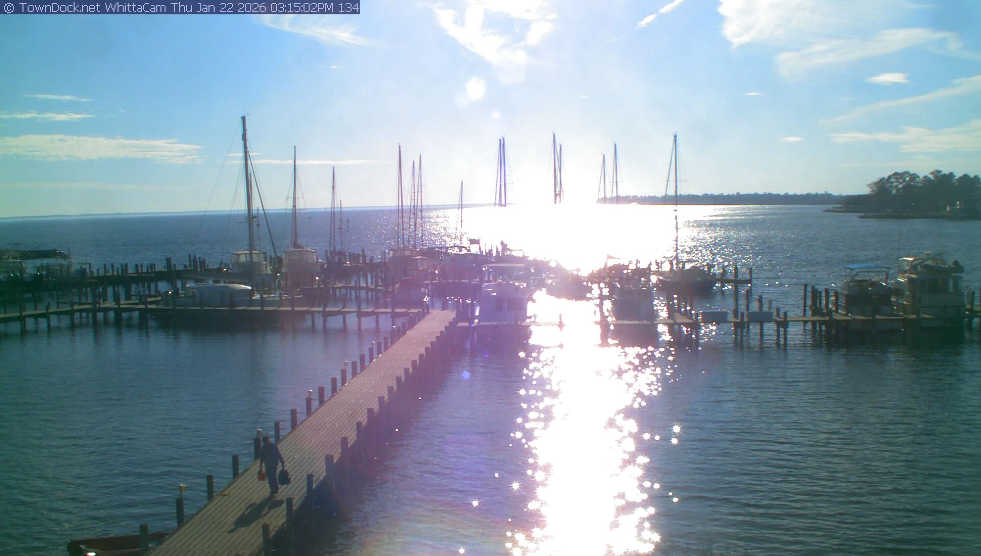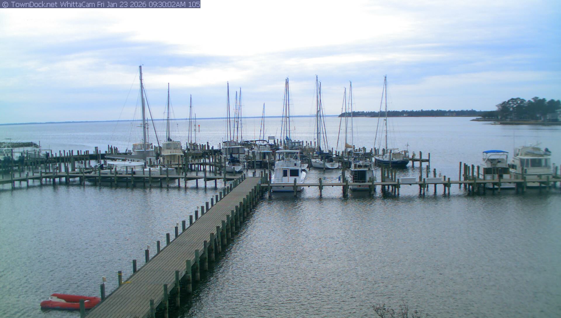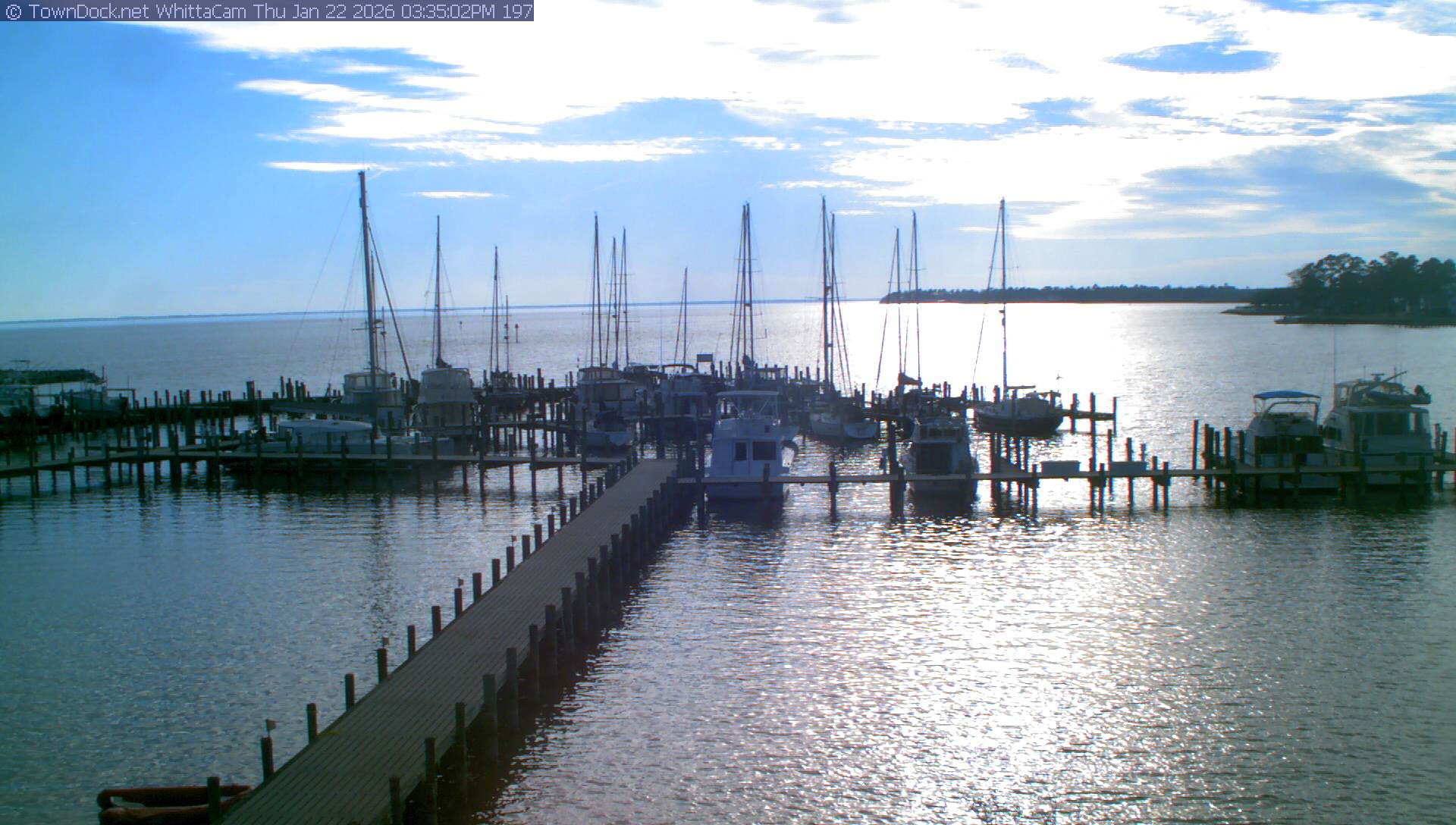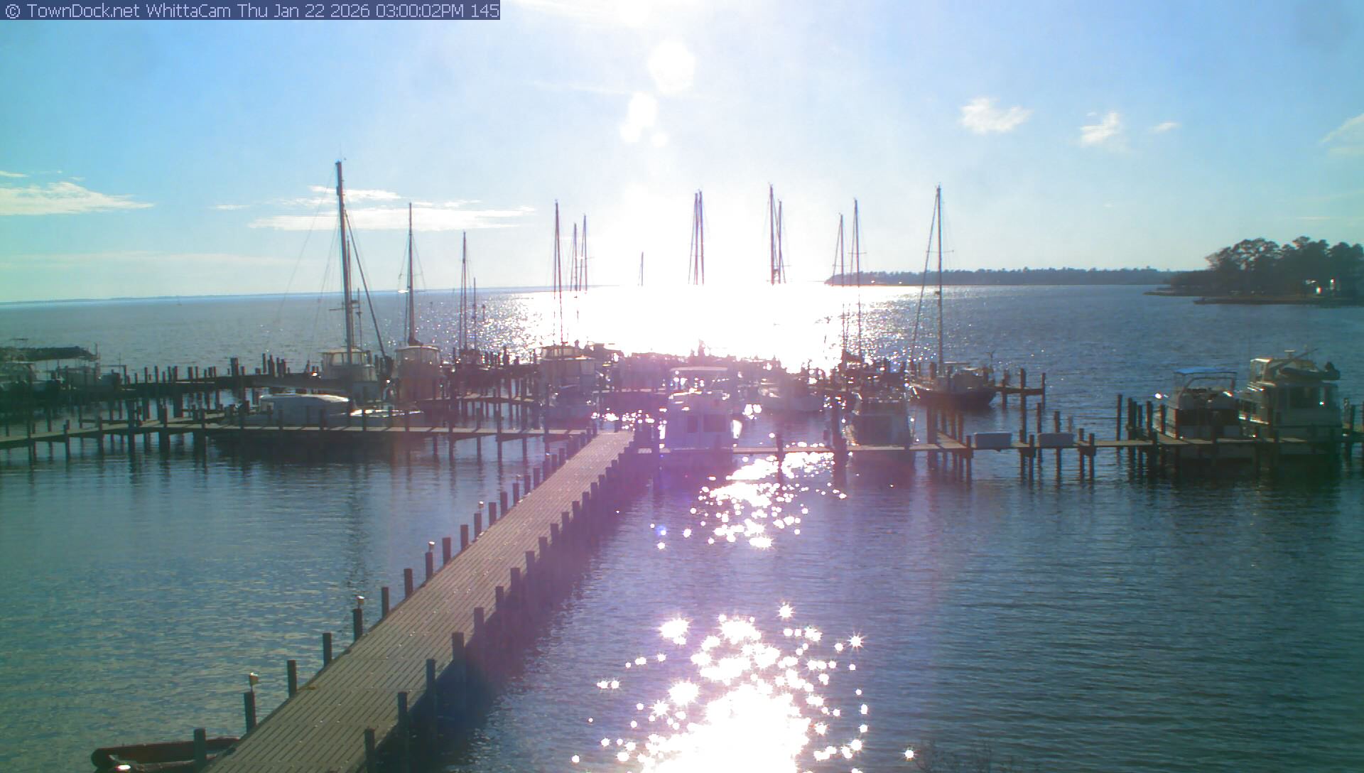 shows Whittaker Pointe Marina and the Whittaker Creek Channel entrance, with the Neuse River in the background. WhittaCam takes a new picture every five minutes from dawn til just before dusk. Click on the image to see a larger version. Once you see that larger version, you can click (see arrow at right) to go back in time and see recent photos. Harbor Cam currently takes photos from 6:00am to 5:00pm.