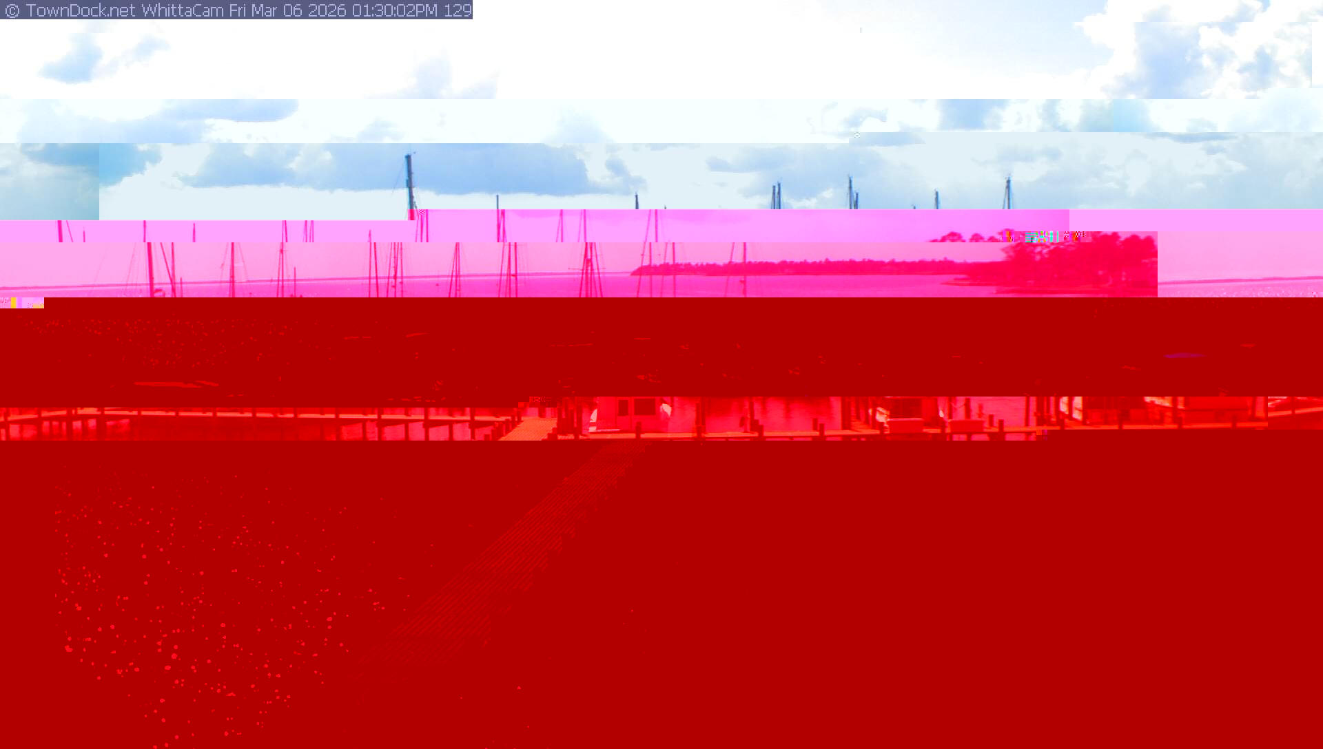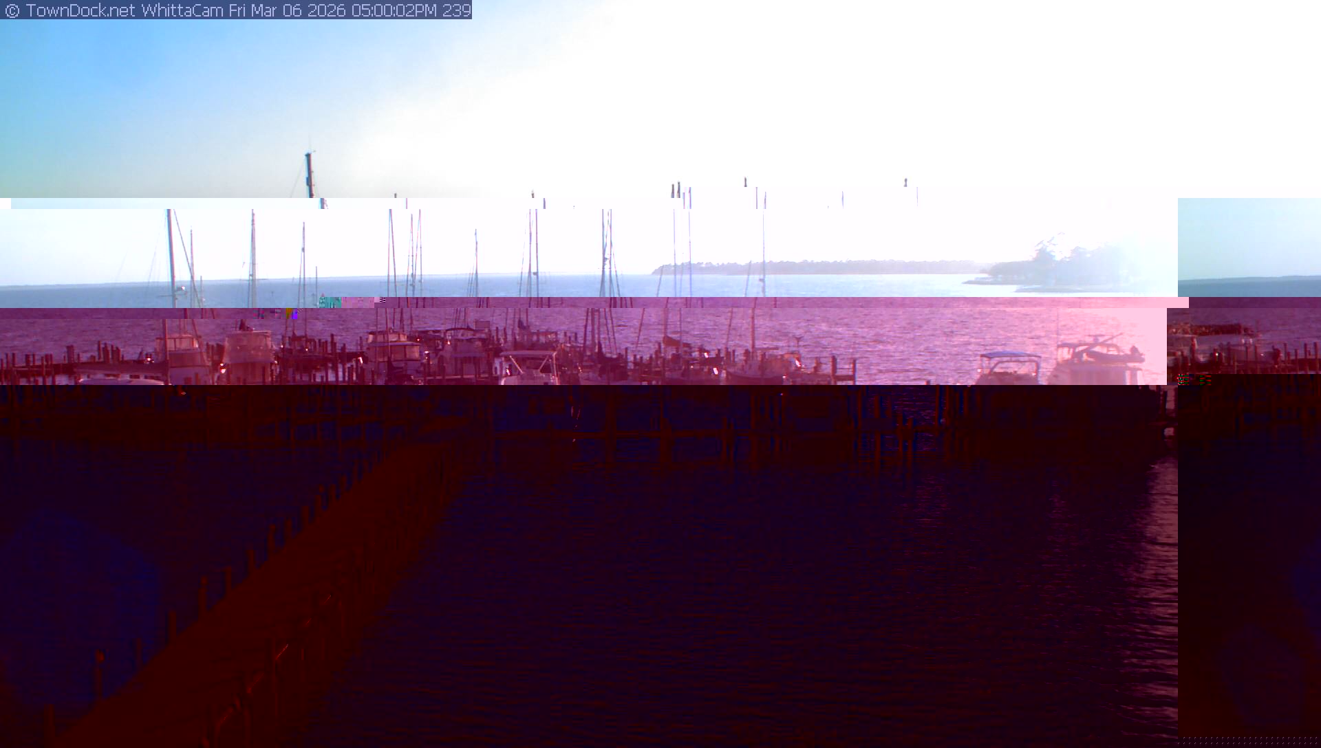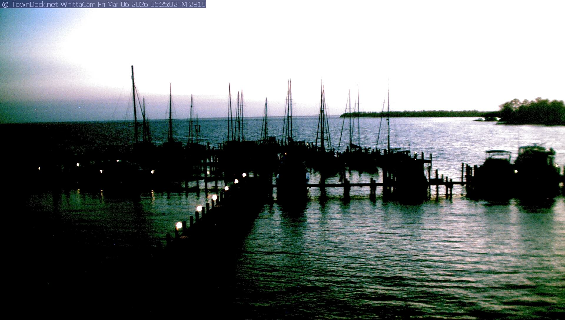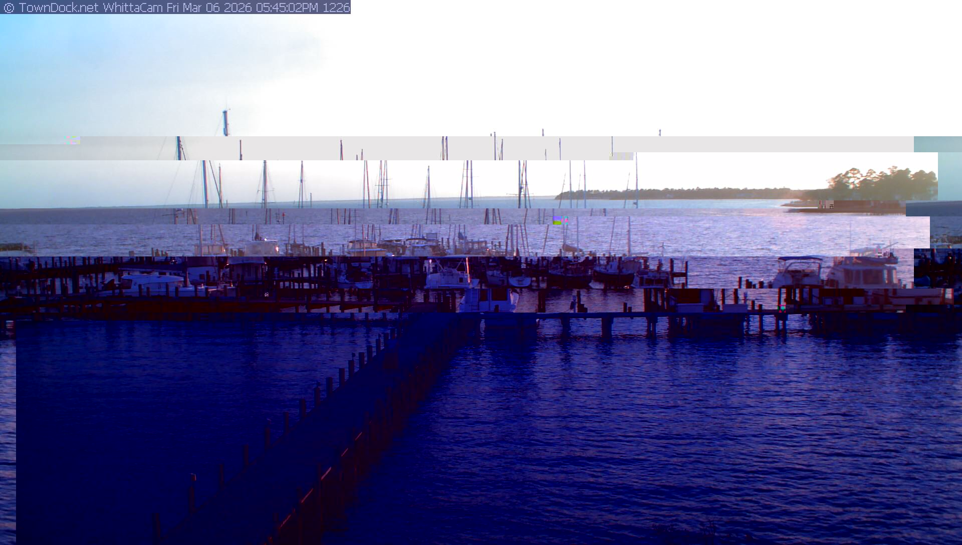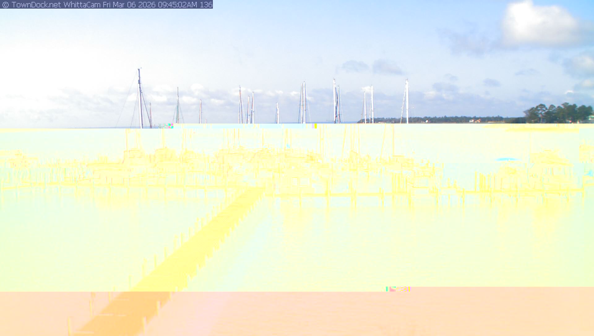 shows Whittaker Pointe Marina and the Whittaker Creek Channel entrance, with the Neuse River in the background. WhittaCam takes a new picture every five minutes from dawn til just before dusk. Click on the image to see a larger version. Once you see that larger version, you can click (see arrow at right) to go back in time and see recent photos. Harbor Cam currently takes photos from 6:30am to 5:30pm.