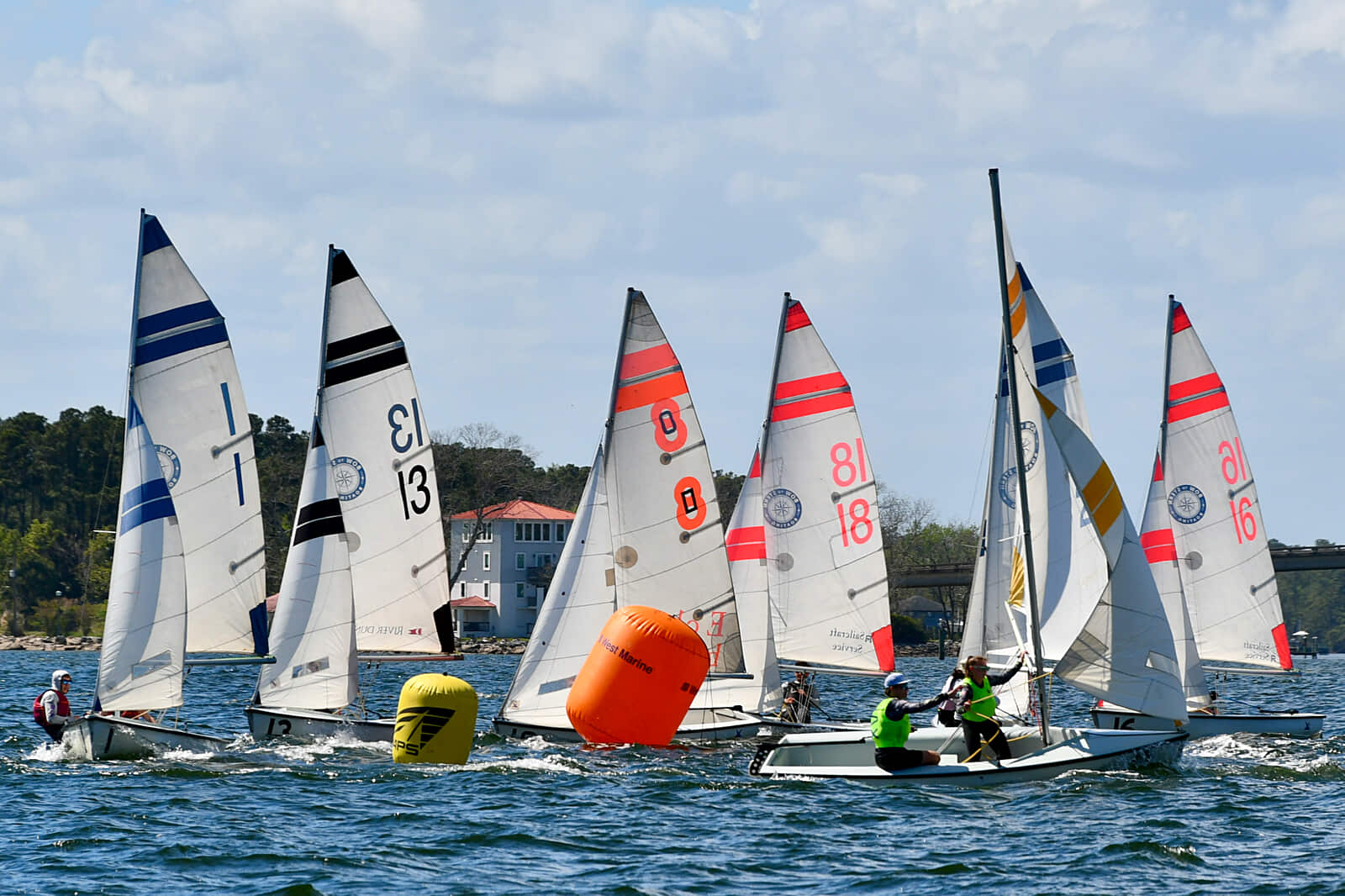 Sailors maneuver at the upwind mark Saturday. (Jennifer Smart photo)