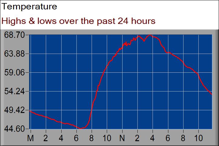 10:51a High wind so far today, 26 mph at 10:12a. It’s a breezy day for the Sailpack Regatta, but they are out there (on Smith Creek).